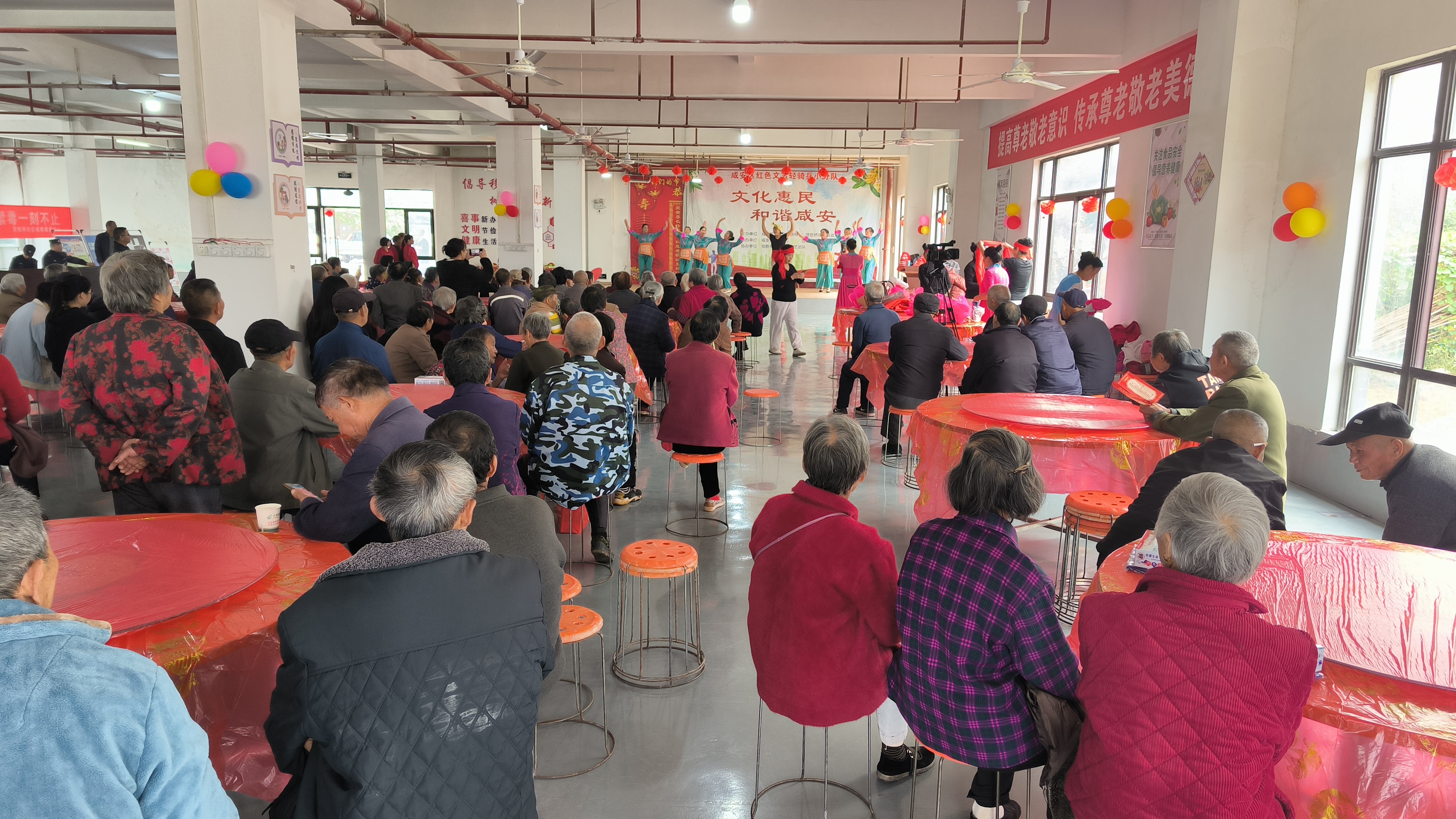 云上咸安报道 10月29日,秋阳和煦,贺胜桥镇贺胜桥社区幸福食堂热闹非凡。红色灯笼悬于梁间,彩色气球映亮墙面,欢快的乐曲早早便在食堂内回荡,第二届社区九九重阳节联谊活动在此温情启幕。
