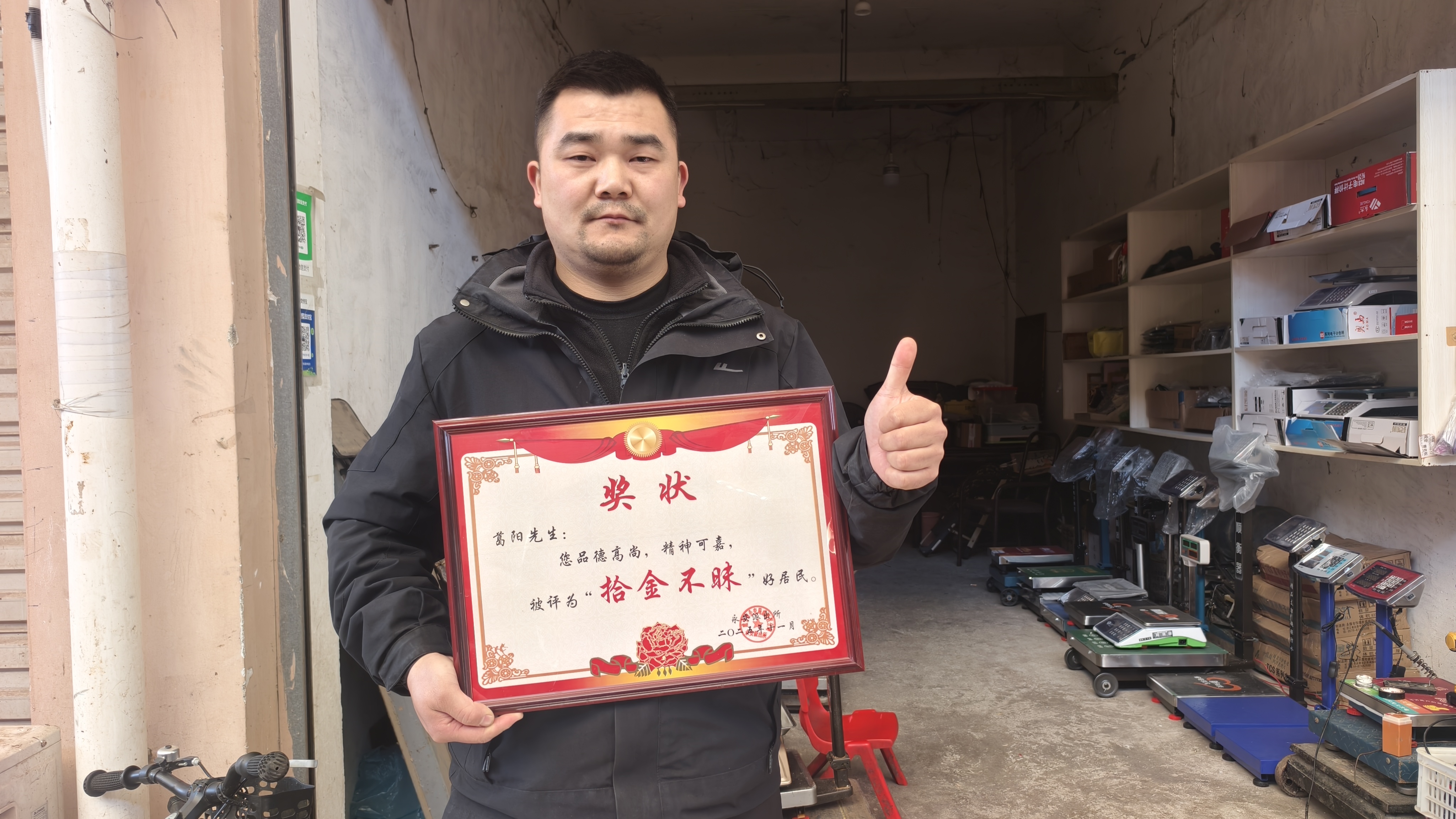 接到永安派出所民警的确认电话后,雷女士激动不已。为表达感激,雷女士特地定制了印有“拾金不昧 品德高尚”的锦旗送给葛阳。永安派出所也为他颁发了“拾金不昧好居民”荣誉证书。
