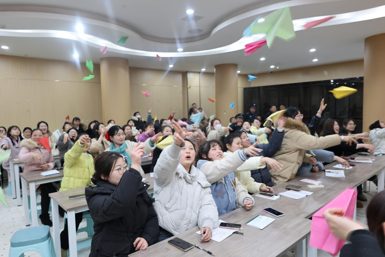 会上,园长魏杏芬回顾了过去一学年各园所的成绩,对全体教职工的辛勤付出表达了衷心感谢,并围绕幼儿园教育质量提升、安全管理、团队建设等重点工作,分享了新学年的工作思路与具体要求。随后,教师们庄严宣誓,表达坚守教育初心、履行职责的决心。宣誓后,教职工参与纸飞机许愿活动,写下愿望,希望孩子平安、同事顺遂。
