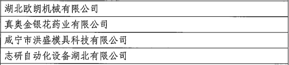 这4家企业分别是:湖北欧朗机械有限公司、真奥金银花药业有限公司、咸宁市洪盛模具科技有限公司、志研自动化设备湖北有限公司。