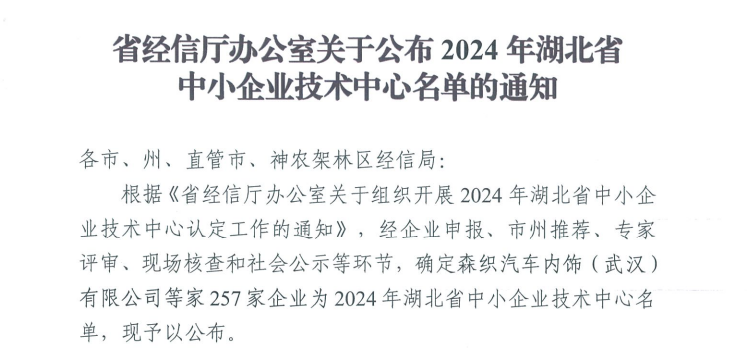 云上咸安报道 2月13日,湖北省经济和信息化厅发文公布了2024年省级中小企业技术中心认定名单,咸宁市认定7家企业,其中咸安区4家企业上榜,总数全市排名第一,实现零的突破。