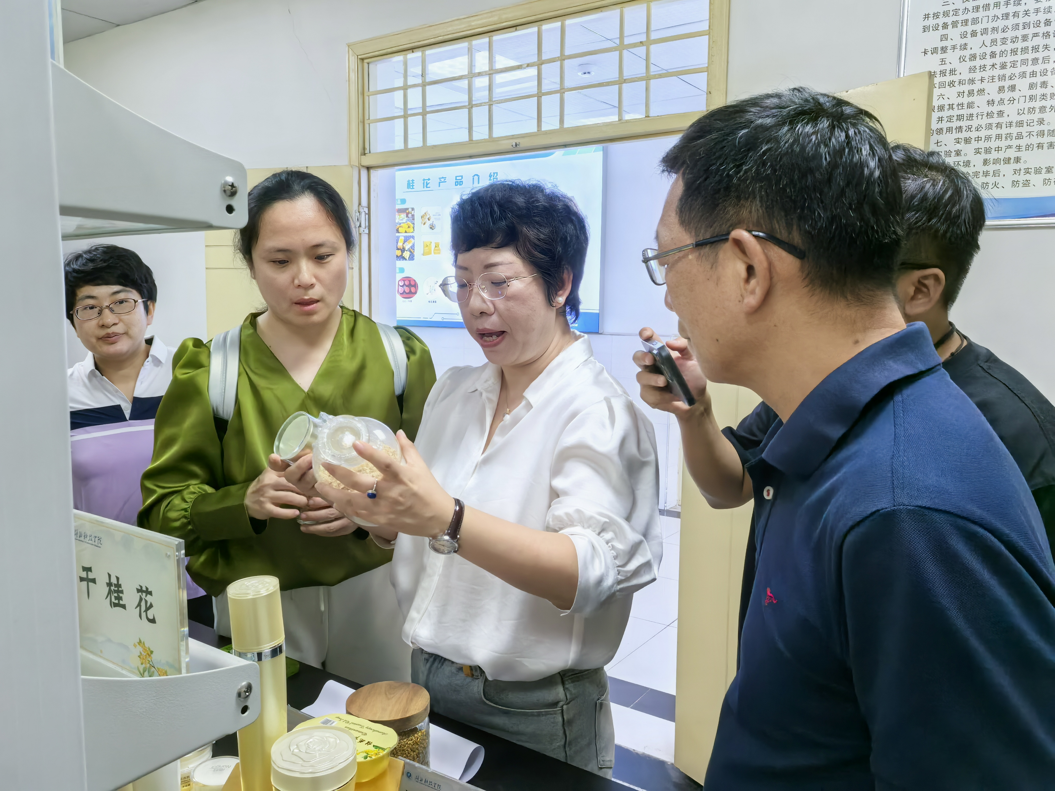 在湖北科技学院桂花研究院,导演组与研究团队深入沟通交流,探寻桂花科研成果及其广泛应用;在双龙山桂花扦插培育基地,导演组详细询问桂花扦插技术要领,了解桂花大规模繁育发展历史情况;在桂花博物馆,导演组饱览咸宁桂花悠久深厚的文化底蕴;在武汉金桂生物公司,导演组感叹桂花全株全链条提取生产工艺;在江南桂谷,导演组领略桂花盆景的千姿百态与丰富的桂花种质资源库……