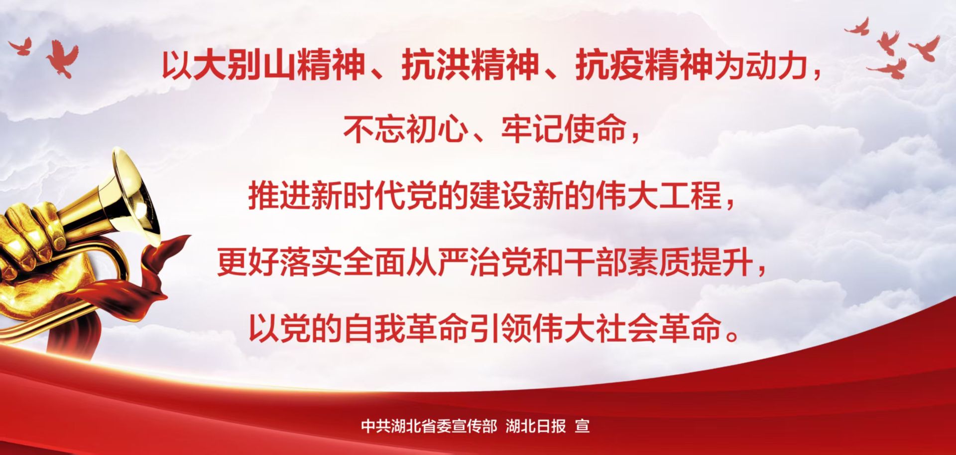 去年深秋,习近平总书记考察湖北时强调,大力弘扬大别山精神、抗洪精神、抗疫精神,广泛践行社会主义核心价值观。这为我们在长江经济带高质量发展中奋勇争先,加快建成中部地区崛起的重要战略支点,奋力谱写中国式现代化湖北篇章,指明了要充分汲取的动力源泉,要广泛汇聚的精神能量。