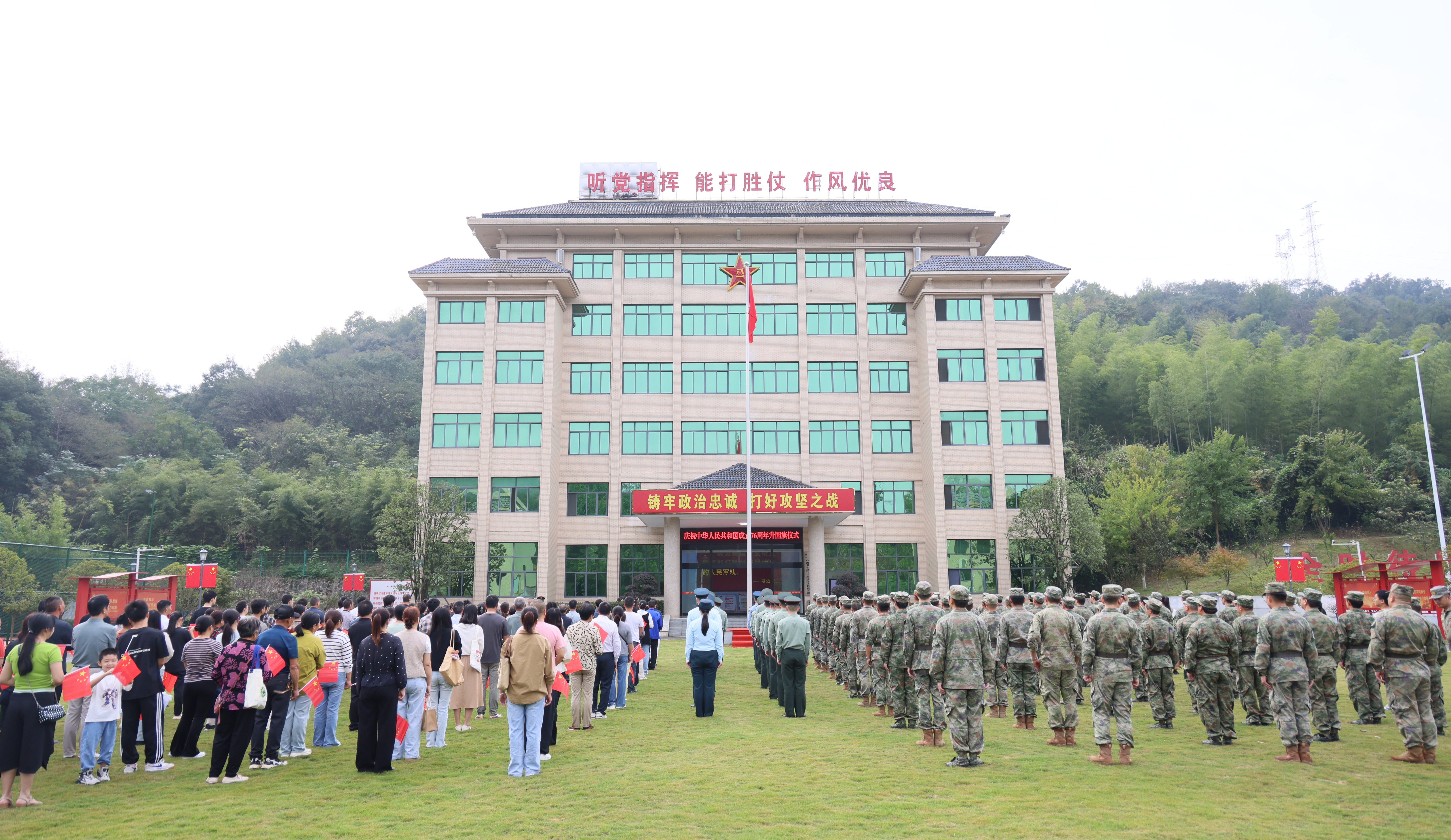 咸宁军分区、咸安区人武部官兵,咸安区各乡镇专武干部、唐光友民兵连及部分民兵代表,2025年秋季入伍新兵家长代表以及区退役老兵代表等共同参加了本次升旗活动。