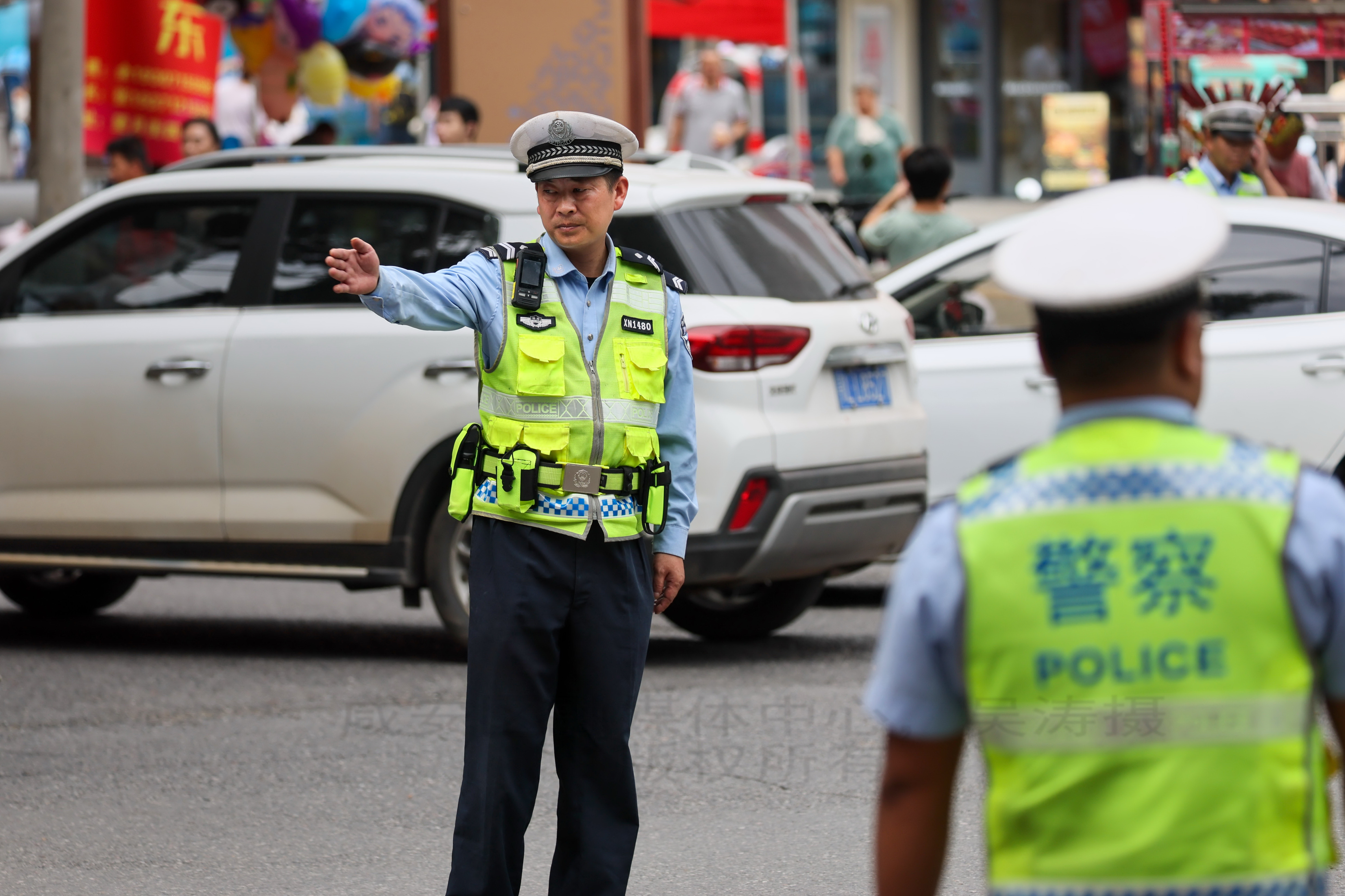 云上咸安报道 10月1日,国庆、中秋“双节”首日,咸宁市公安局咸安区分局交管大队全员到岗,在咸宁城区各主要路口、路段开展交通疏导与安全保障工作,全力应对假期出行高峰。