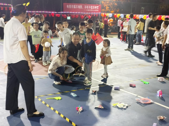 万年路社区新时代文明实践站联合龙城物业,在璟园小区开展“我在新时代文明实践站过国庆——月满庆华诞 家国两团圆”趣味园游会。美食区的月饼、烤肠、爆米花等香气四溢,游戏区的套圈活动欢呼声不断,手工制作区里孩子们在志愿者指导下用彩纸画笔勾勒对祖国的祝福。热闹之余,志愿者还通过发放手册、现场讲解,向居民普及反诈知识;宣传垃圾分类与移风易俗,引导居民养成文明绿色生活习惯,让居民在互动中感受节日氛围。