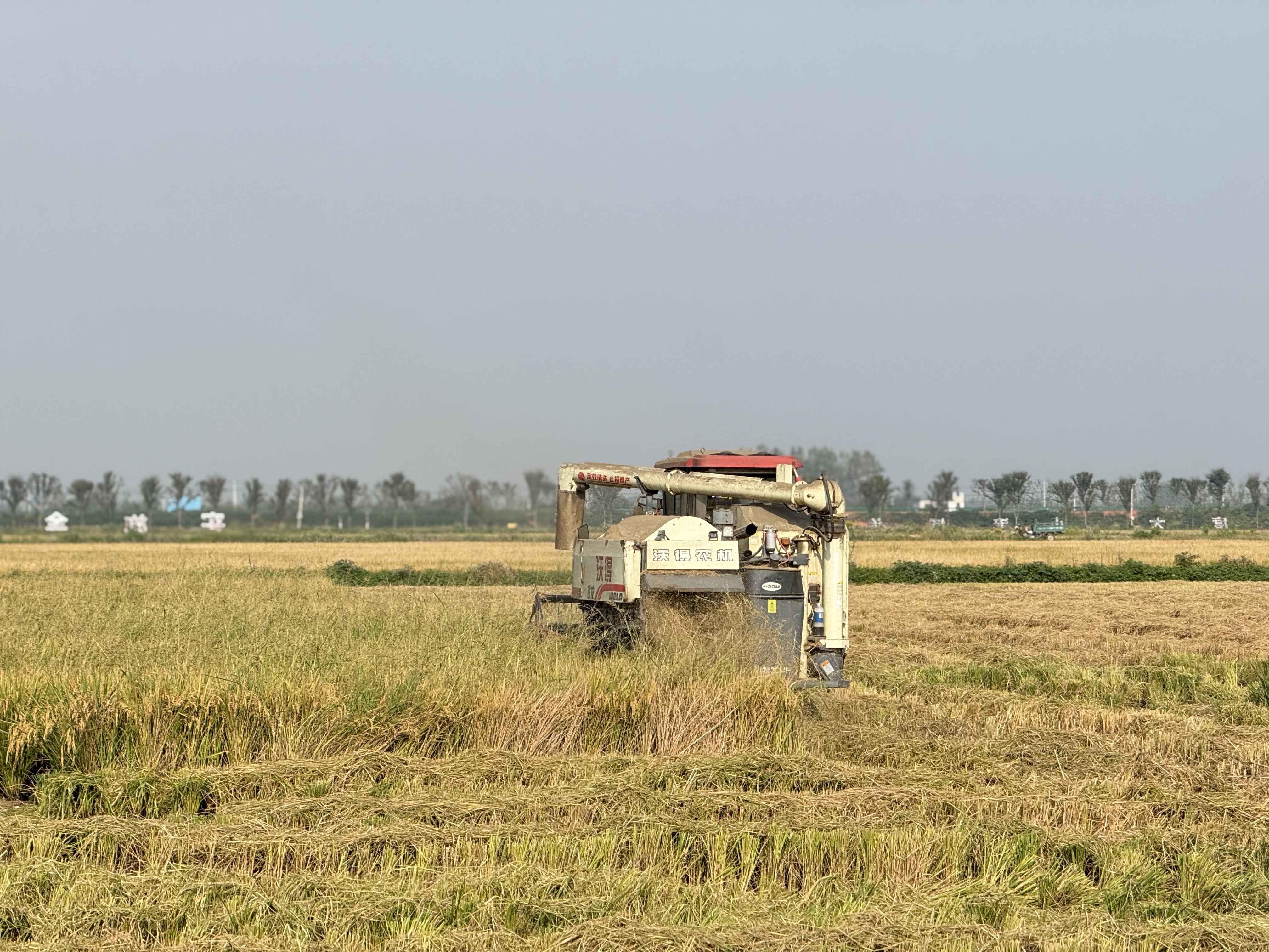 这片即将被完全“揽入怀中”的丰收,来之不易,更凝结着多方智慧与汗水。据湖北咸安向阳湖农业发展有限公司副总经理李凤超回忆,今年水稻于5月底开始播种,生长期遭遇了高温天气挑战。“关键时刻,当地农业植保部门及时提供了科学指导,我们积极采取了有效的抗高温保灌浆措施,为水稻稳产高产打下了坚实基础。”同时,前期的“一喷多促”等田管技术有效保障了灌浆质量,加之农业农村局及场农技人员的持续跟踪服务,共同稳住了今年的收成。“预计亩产干谷能达到1000斤左右,收成比较理想。”李凤超补充道。