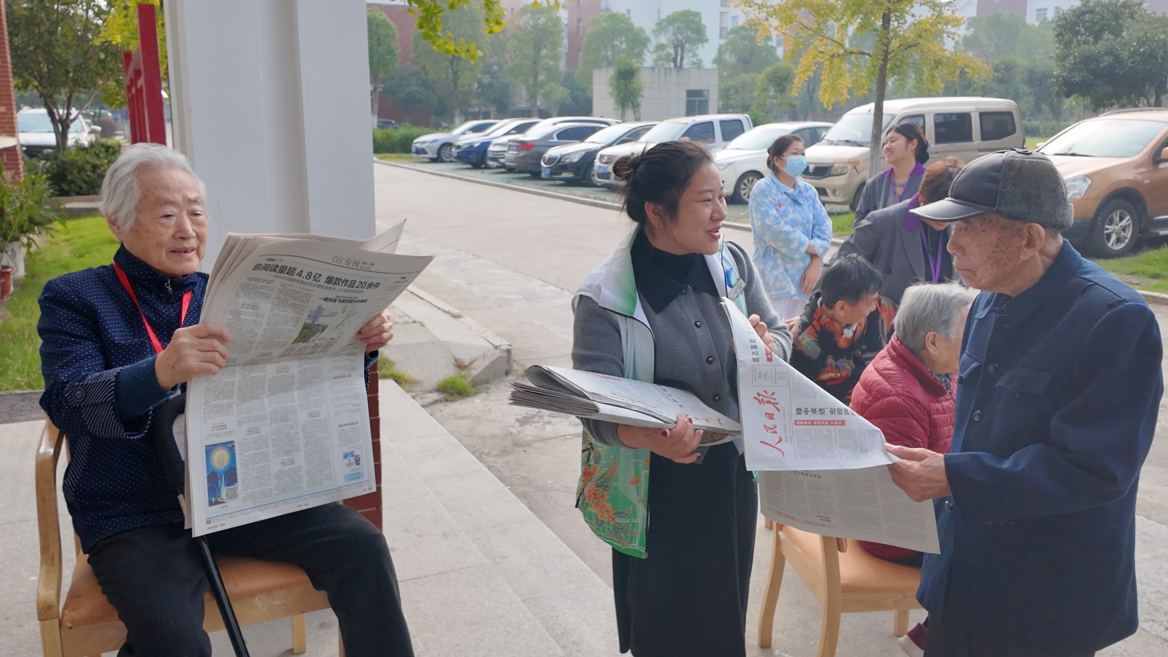 不仅如此,咸安区图书馆还带来各类报纸为老人朗读新闻,从家乡咸安的发展动态,到关乎民生的政策利好。“咱们咸安发展越来越好了,图书馆还专门来给我们读报纸、送温暖,这日子真是越过越有滋味了!”一位老人感慨道,眼中满是笑意与欣慰。