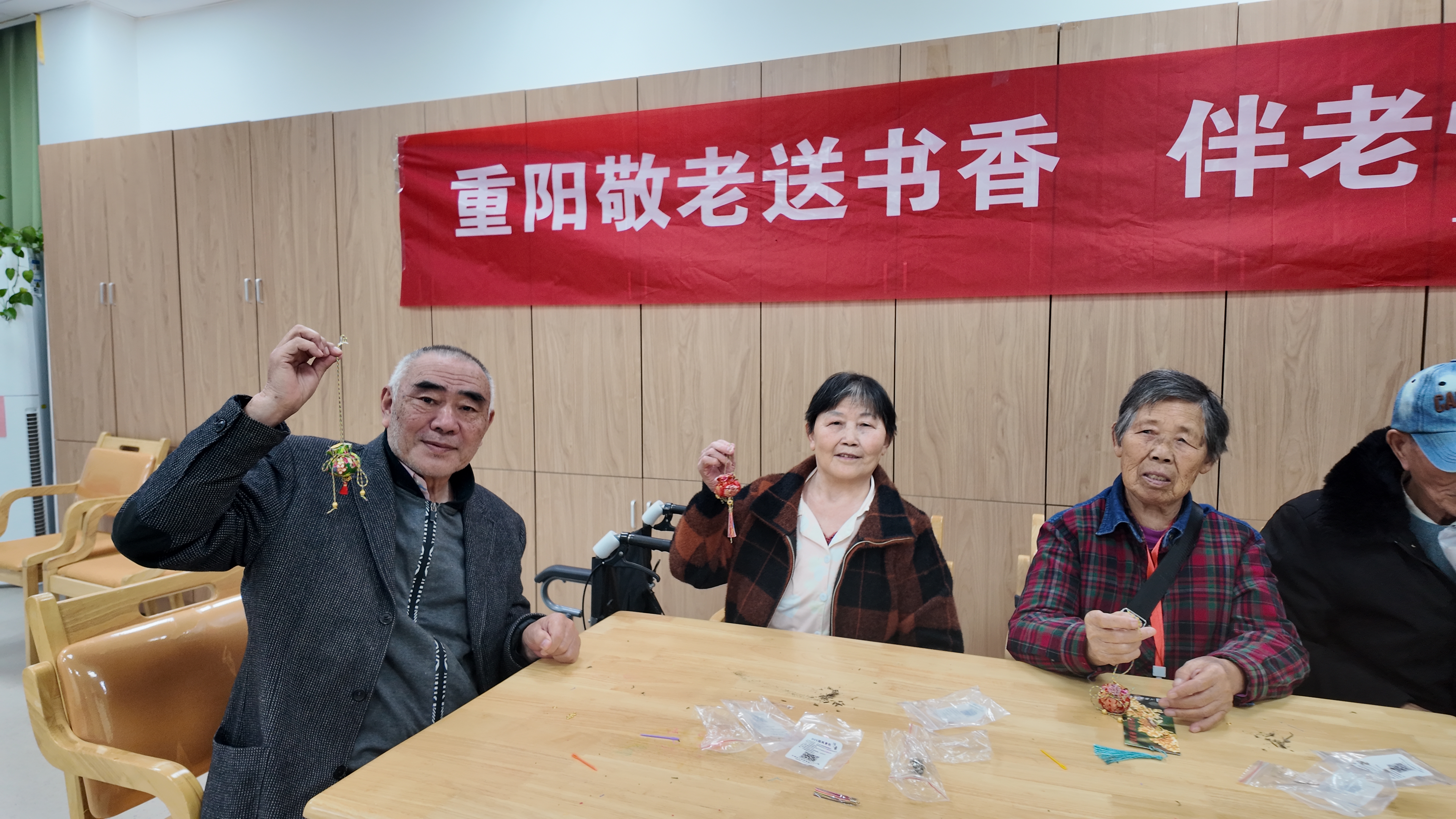 在筷子接力游戏中,老人们分组协作、默契配合,用筷子传递象征“福寿”的道具,当“福寿”等字稳稳交接时,欢笑声在人群中散开;“问答知识PK”环节,馆员们以击鼓传花的形式,围绕重阳习俗、养生常识、经典诗句等内容提问,老人们积极抢答,偶尔凑在一起小声讨论,在互动中加深对传统文化与健康知识的理解和记忆。