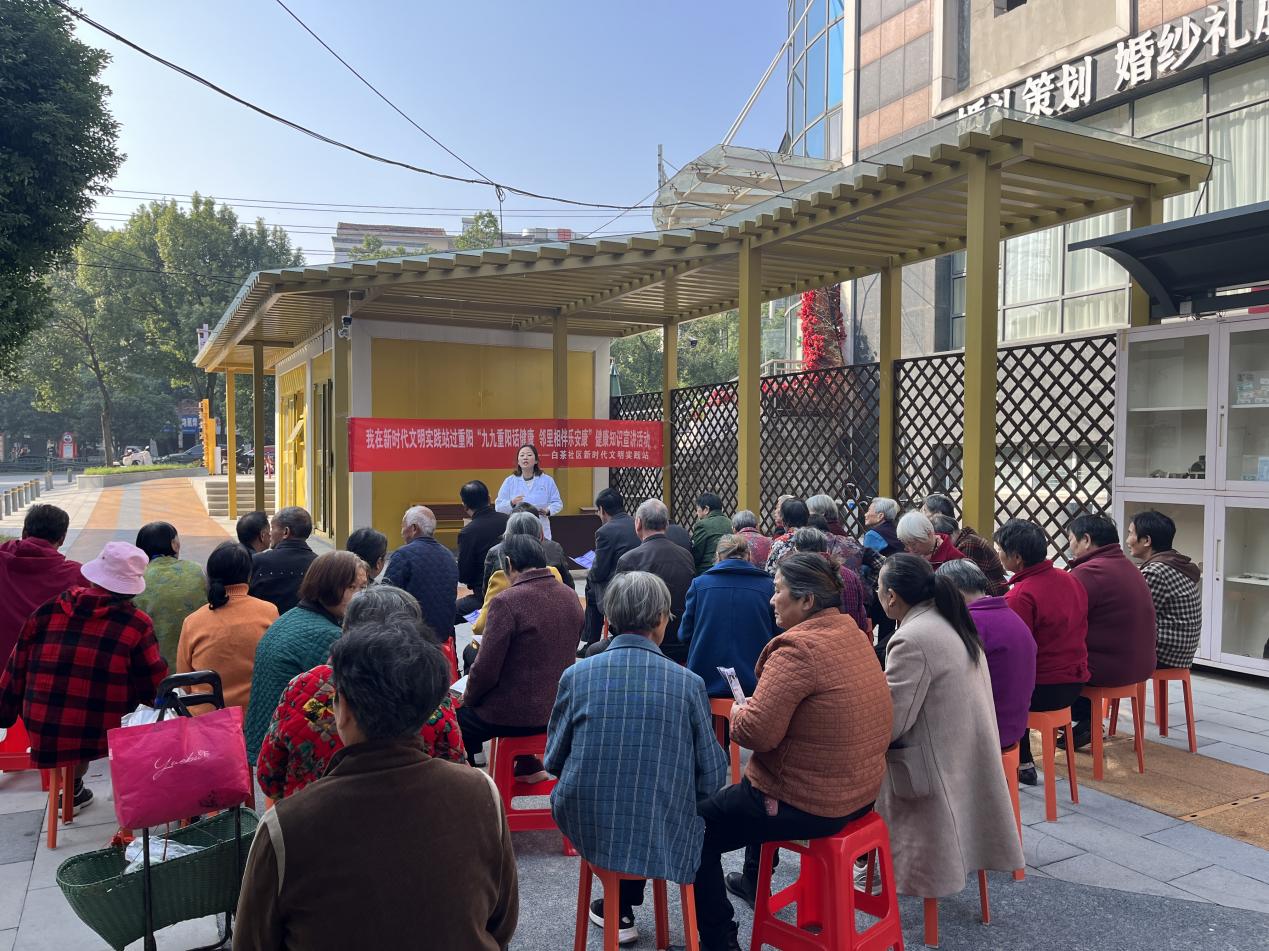 云上咸安报道 岁岁重阳,今又重阳。10月28日上午,温泉街道白茶社区联合温泉社区卫生服务中心,在中屋巷邻里驿站温情举办“九九重阳话健康,邻里相伴乐安康”主题健康知识宣讲活动,将健康关怀与节日温暖送到居民心坎上,近50位社区居民及老年群体踊跃参与。