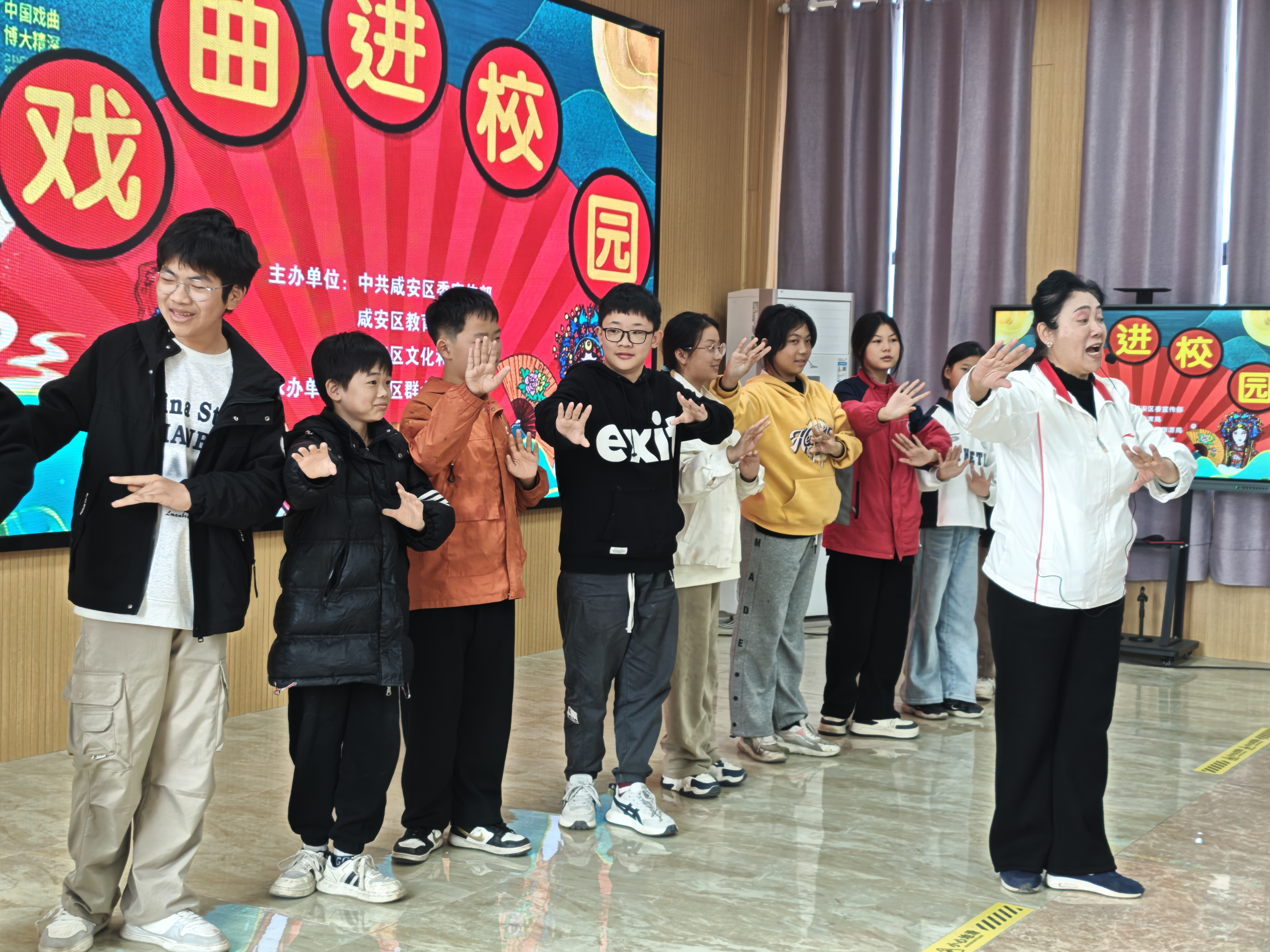 云上咸安报道 11月13日,由咸安区委宣传部、区教育局、区文旅局联合主办,区群艺馆、马桥镇新时代文明实践所承办的“戏曲进校园”主题活动在马桥中学校园里上演。