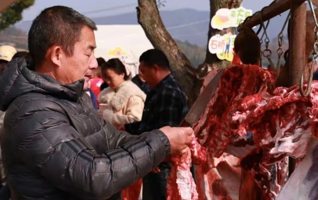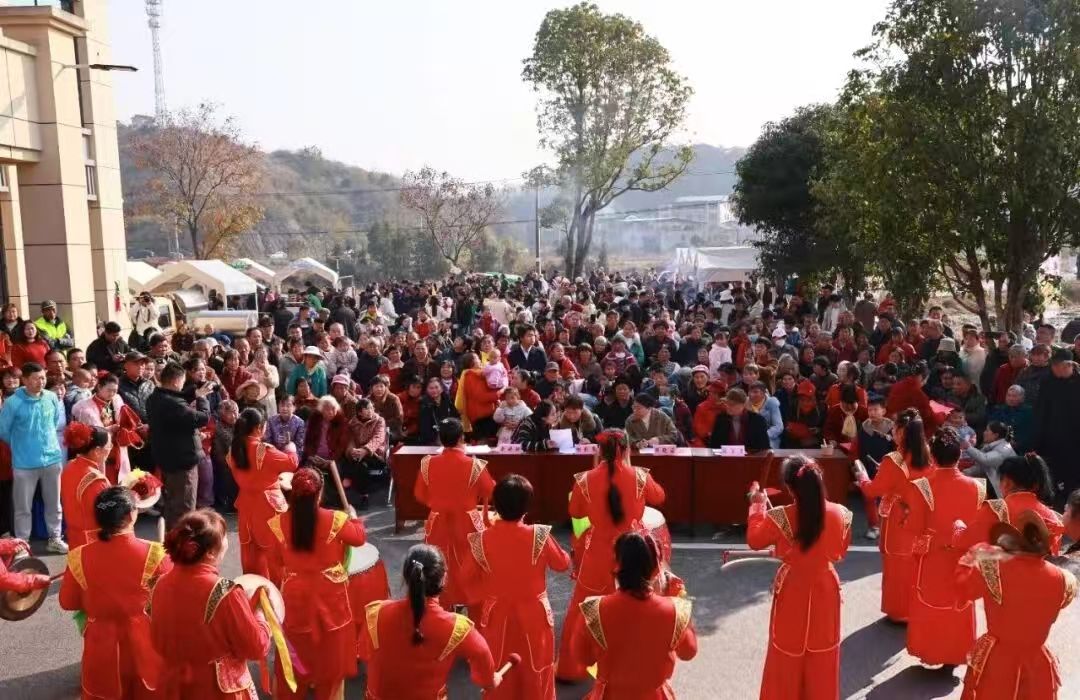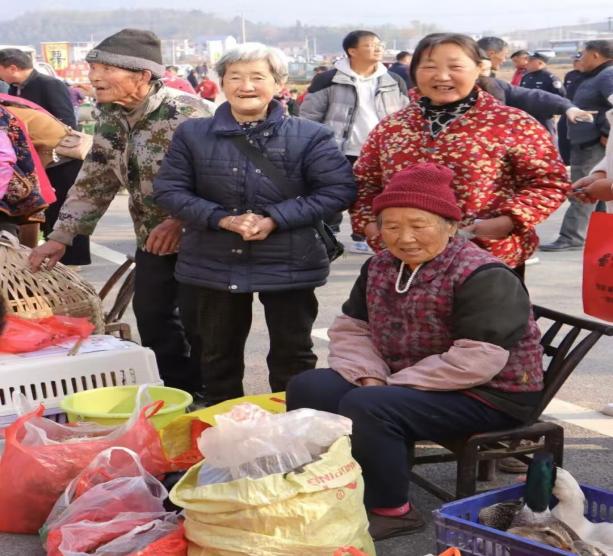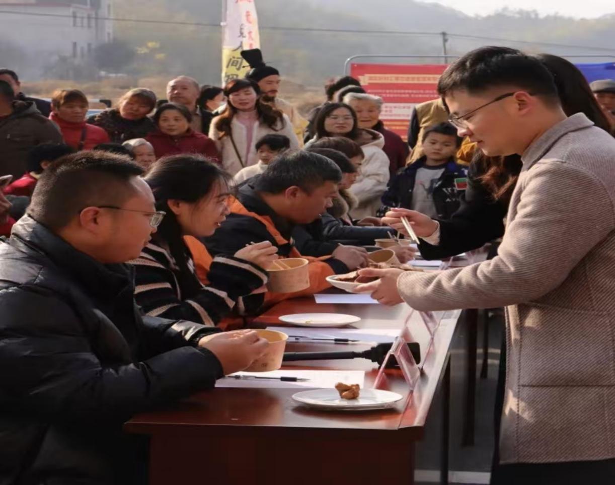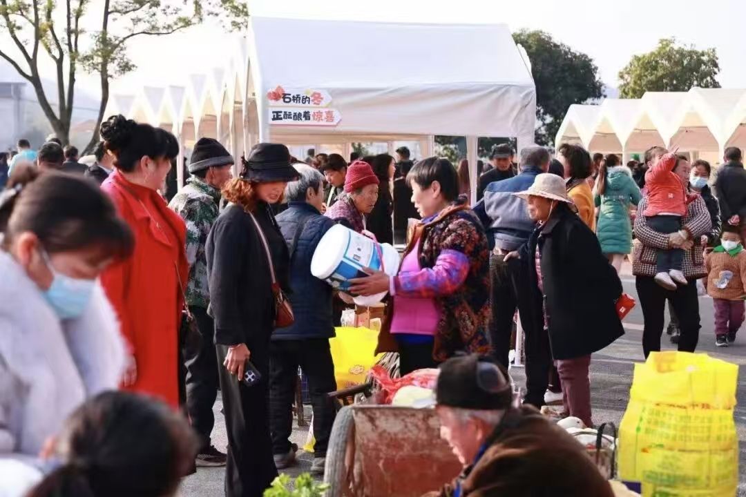 12月7日上午9时整,大幕乡集在《大幕开场锣》的戏台演出中拉开了帷幕——三记铜锣,深沉嘹亮,余音在山谷间撞出清澈的回响。人们纷纷应声而至:白发老者拄着竹杖缓步而来,孩童骑在父亲肩头挥舞糖画小旗,穿蓝布棉衣的农妇挎着藤篮,篮子边沿还沾着清晨新采的菜薹露水;更有从咸宁城区驱车而来的游客,相机镜头频频对准地摊上摆放的香熏腊肉、竹匾里铺展的金黄笋干,还有那被山风拂得微微晃动的“乡味源”布幔。人声、笑语、柴火噼啪、油锅滋啦……汇成一股温热的溪流,在石桥村的肌理间汩汩奔涌。