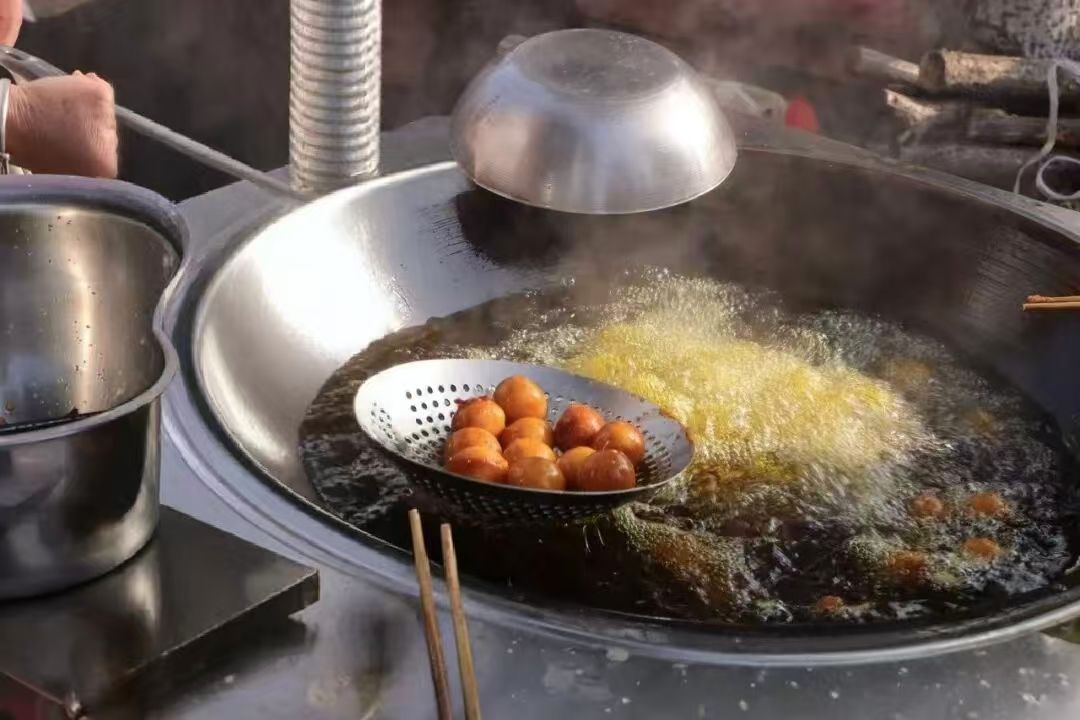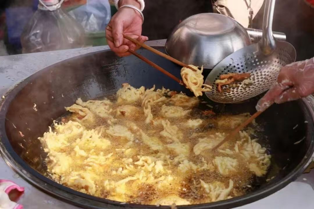 周静红的炸丸子摊前,队伍已排至银杏树下。油锅沸腾,豆腐肉丸沉浮如金鲤,苕圆滚烫酥脆,萝卜丝圆外焦里嫩,刚一出锅便被抢购一空。她左手挤丸,右手翻铲,袖口卷至小臂,露出结实的小麦色肌肤。“凌晨三点剁肉,五点和面,六点生火……”她抹一把汗,油星溅在脸颊上也不擦,“没想到,山里的烟火气,真能烫热城里人的心。”