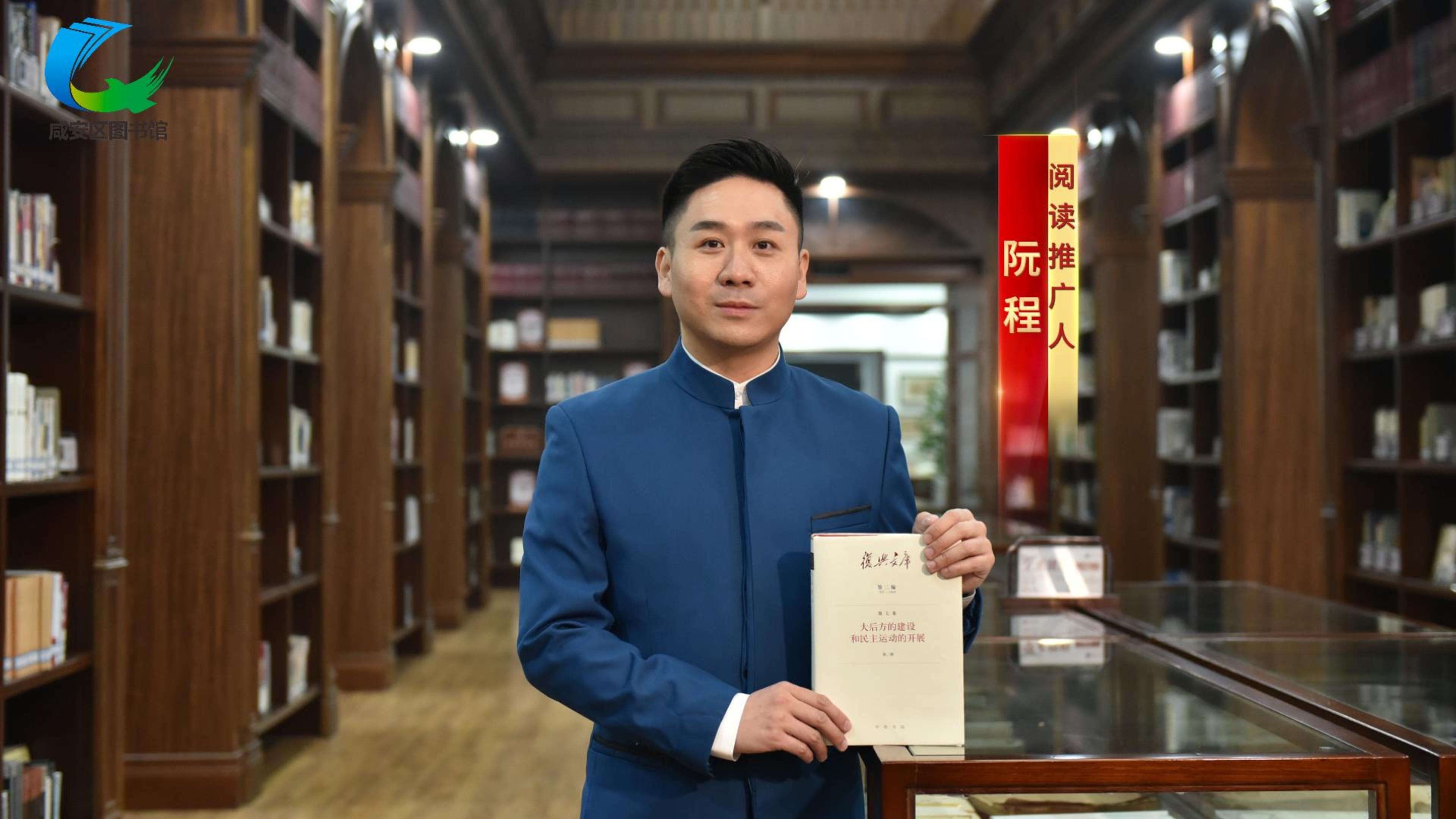 为积极响应全民阅读号召,进一步传播复兴历史、凝聚精神力量,在咸安区文化和旅游局的统筹部署下,区图书馆以2023年“4·23”世界读书日为重要契机,创新推出《复兴文库》阅读推广人视频,该项目成为全国首例以《复兴文库》为主题的阅读推广人视频项目,不仅为图书馆阅读推广工作开辟了全新赛道,更为行业内同类项目开展提供了可复制、可借鉴的实践范式。