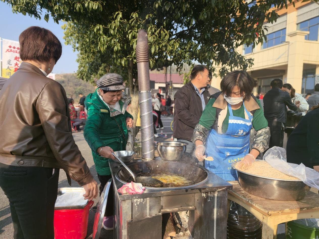 市集一侧,拔河比赛激烈进行。全乡15个村(社区)组队参赛,呐喊助威声不绝于耳。“输赢都高兴,感情更近了!”井头村党支部书记王宏江笑着说。互动游园区同样人气旺盛,踢毽子、套圈、知识答题等活动同步开展,大人孩子同场竞技,凭获得的“银票”可兑换土鸡、土鸡蛋等农产品。