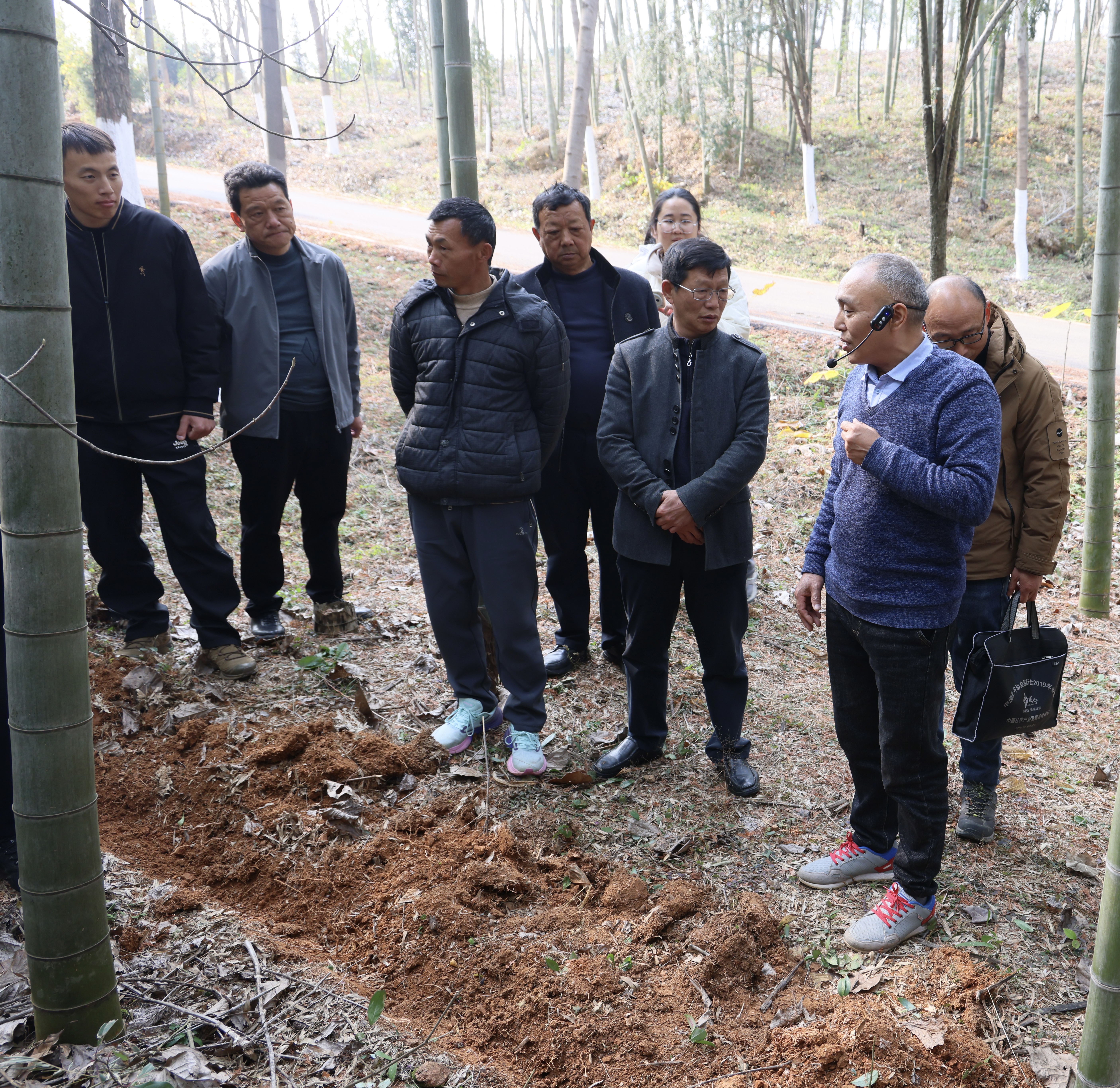 下午,参训人员赴贺胜林场示范基地实操。专家现场演示油茶花期调控、苗木养护技术,同时指导楠竹留笋养竹、土壤改良等实用方法,针对“老林更新”“笋竹增产”等问题互动答疑。