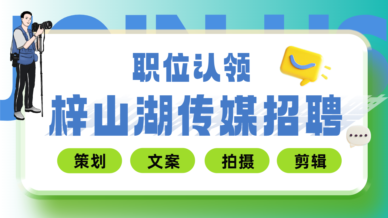 湖北梓山湖影视文化传媒有限公司,正在全城搜罗视频拍摄剪辑“千里马”!1-3名席位虚位以待,有才华你就来,把热爱变成饭碗,解锁职场新可能~