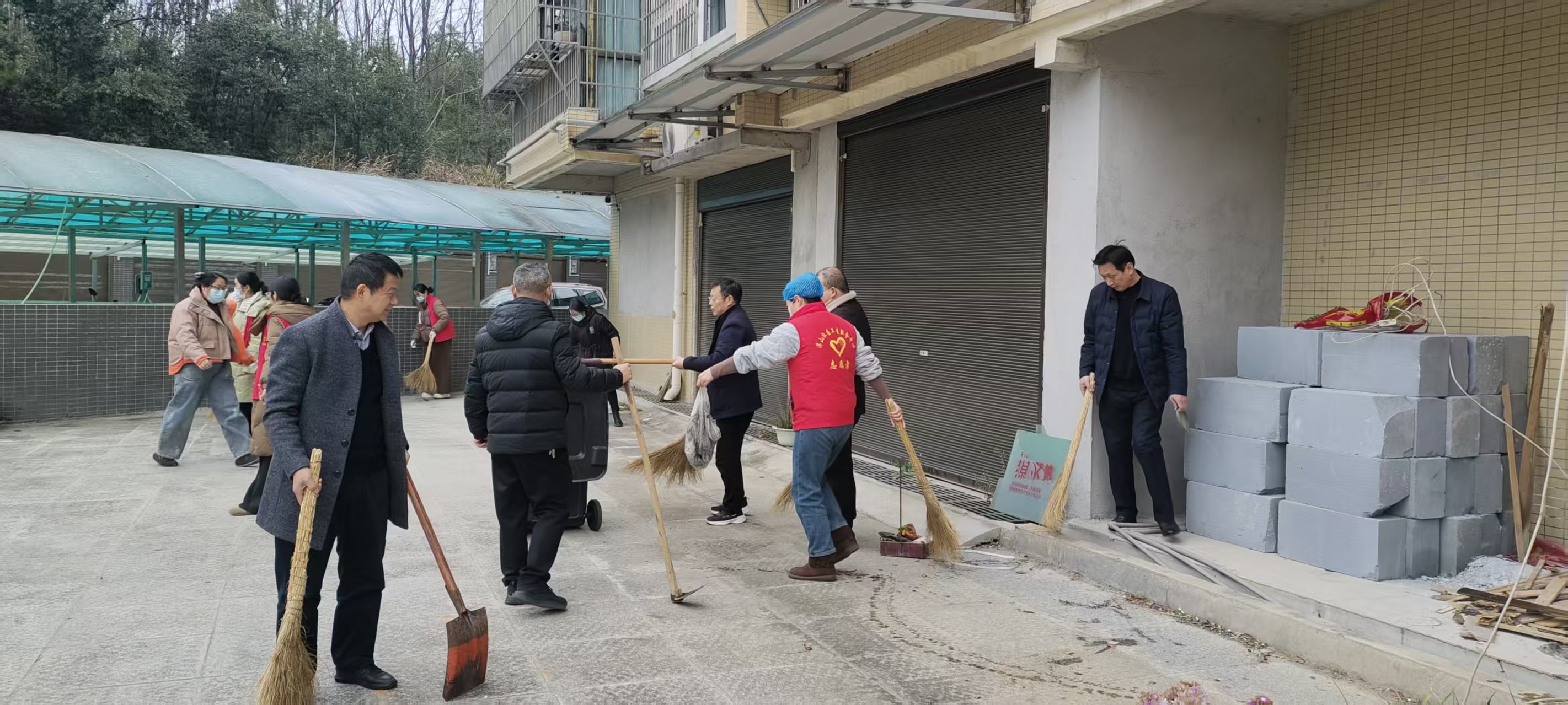 活动现场,大家分工明确、干劲十足。有的用大扫帚聚拢落叶、纸屑,有的拿铁铲清除墙角、楼道口的污渍和杂物,有的弯腰捡拾草丛里的塑料袋、烟头,有的清理屋檐下的蜘蛛网。除此之外,志愿者们还对堵塞的排水沟进行疏通。铁铲与地面的摩擦声、扫帚的沙沙声、大家的交谈声,交织成劳动交响曲。