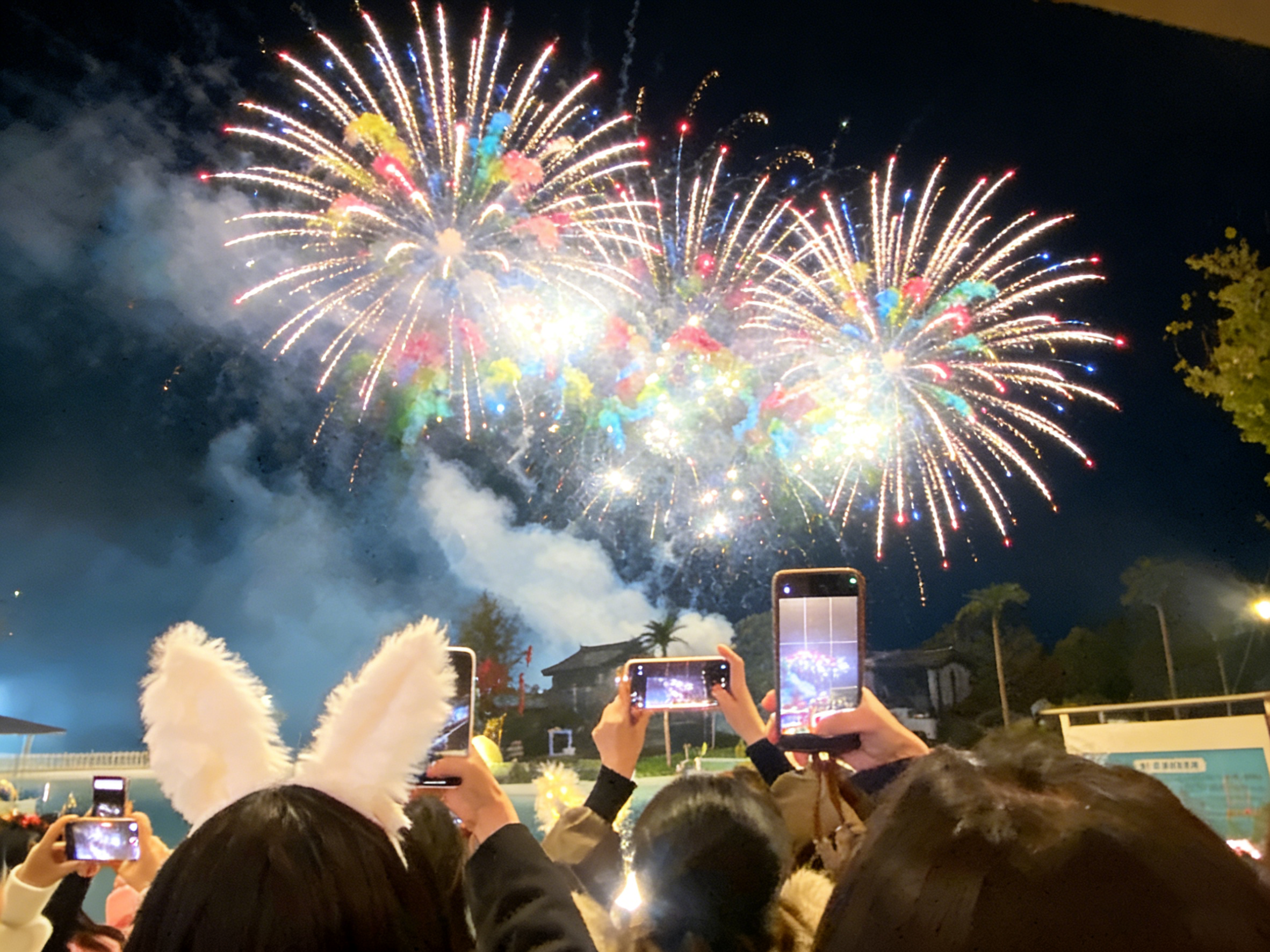 随后,精彩的非遗火壶表演震撼上演,传承者手腕翻飞,操控火焰如流星绸缎般舞动,展现了千年技艺的现代魅力。而“燃烧烦恼木”与“放飞孔明灯”环节,则让游客亲身参与了一场辞旧迎新的心灵之旅。当晚活动在七彩祥云烟花秀的漫天绚烂中达到最高潮,璀璨的烟花与升空的祈愿灯交织,为跨年之夜留下了深刻而温暖的记忆。