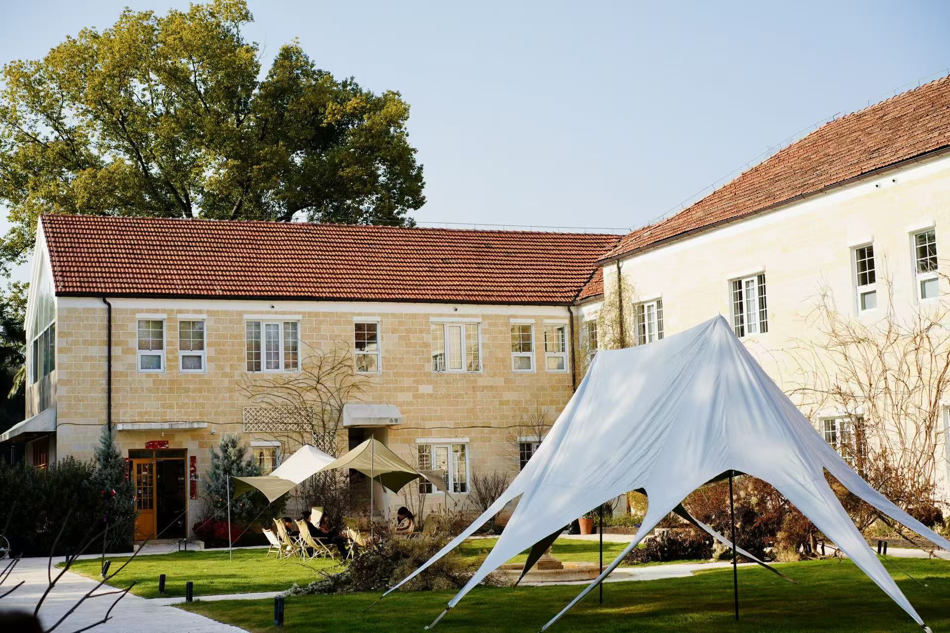 山里民宿位于咸安区贺胜桥镇桃林村,由原村委会小学闲置用房改建而成。建筑外观具有典型的英式乡村特色,红顶房屋搭配米黄色墙面,周围是大片的草坪和绿植。在硬件设施配置上,该民宿兼顾功能性与舒适度,客房内采用纯实木家具,配备地暖、浴缸等完善设施,可满足游客基础住宿及品质体验需求;在细节设计上,客房窗户经针对性规划,推窗可观赏翠竹、湖泊等自然景致,为游客提供了贴近自然的住宿环境。