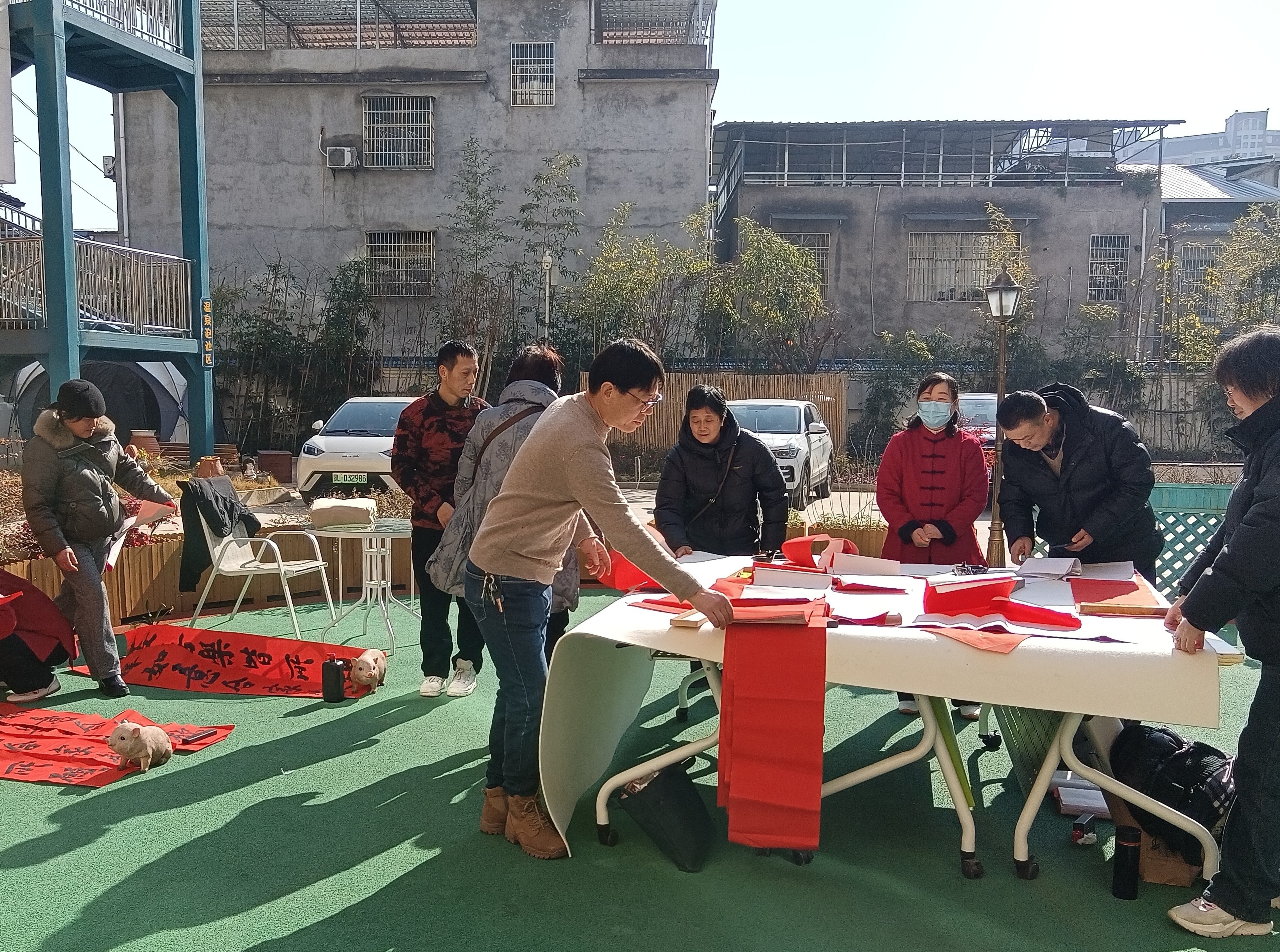随后,新年茶话会、包饺子、送春联等环节依次开展。茶话会上,长辈们品茗交流、共话新年愿景;包饺子现场,大家分工协作、欢声笑语不断;书法爱好者挥毫泼墨,将真挚的新年祝福融入笔墨间,居民们领取春联,满载福气而归。