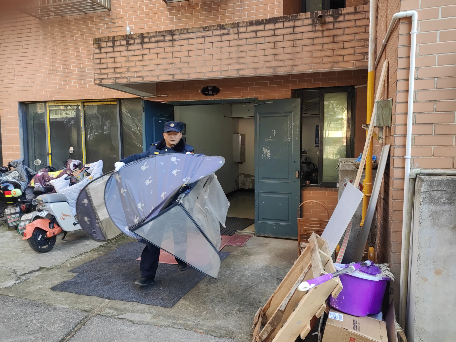 活动中,区城管执法局党员干部与社区工作者、物业人员及社会志愿者共同组成清洁小组,分组包片、协同作业。在越通美院小区,党员、志愿者深入背街小巷、楼道单元,重点清理卫生死角、乱堆杂物及各类“牛皮癣”广告,同步规范车辆停放秩序,有效改善社区公共空间环境。与此同时,在书香门第与书雅城小区,百余支小分队携带专业工具,针对绿化带隐蔽垃圾、楼道堆放物、墙面广告等进行全面清整,执法车辆配合转运积存垃圾,现场呈现出“人人动手、户户参与”的生动局面。