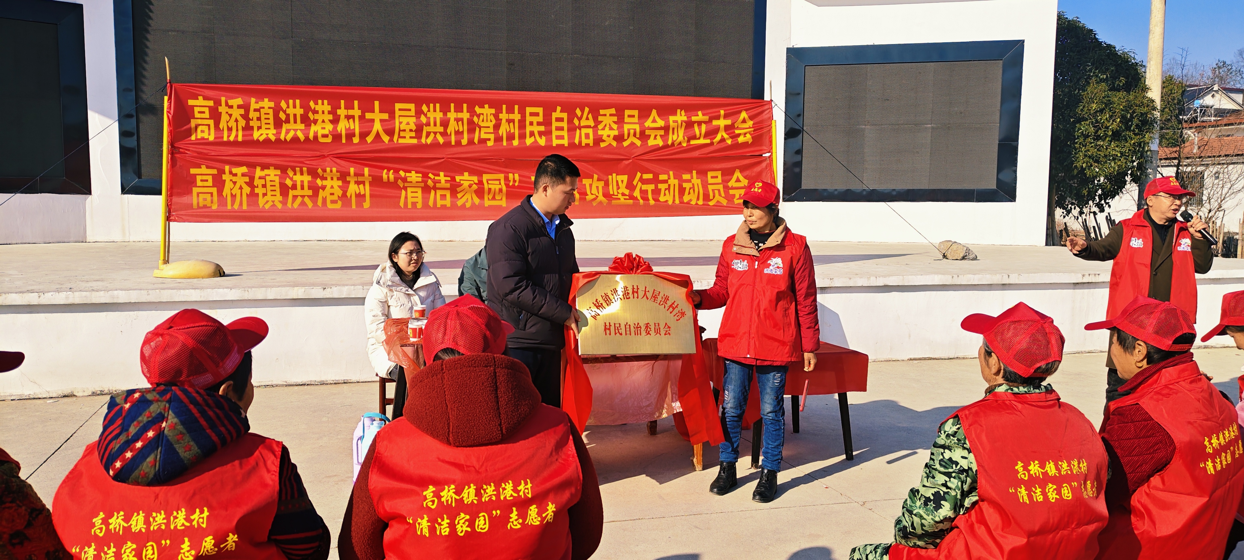 云上咸安报道 1月9日,高桥镇洪港村在大屋洪村湾文化广场举行“清洁家园”百日攻坚行动启动仪式暨大屋洪村湾村民理事会揭牌仪式,该镇相关领导、村“两委”干部、党员代表及村民代表齐聚一堂,共同见证村庄治理迈入“大家事、大家管”的共治新阶段。