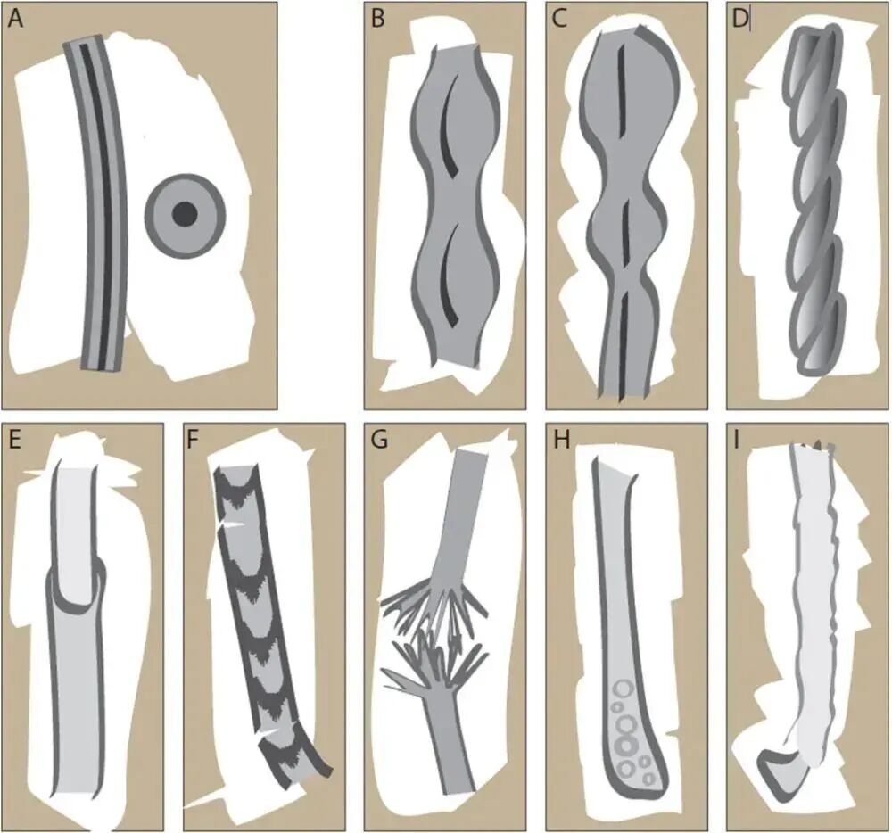 △各种各样的发干异常(A除外,A是正常头发的纵横切面)
