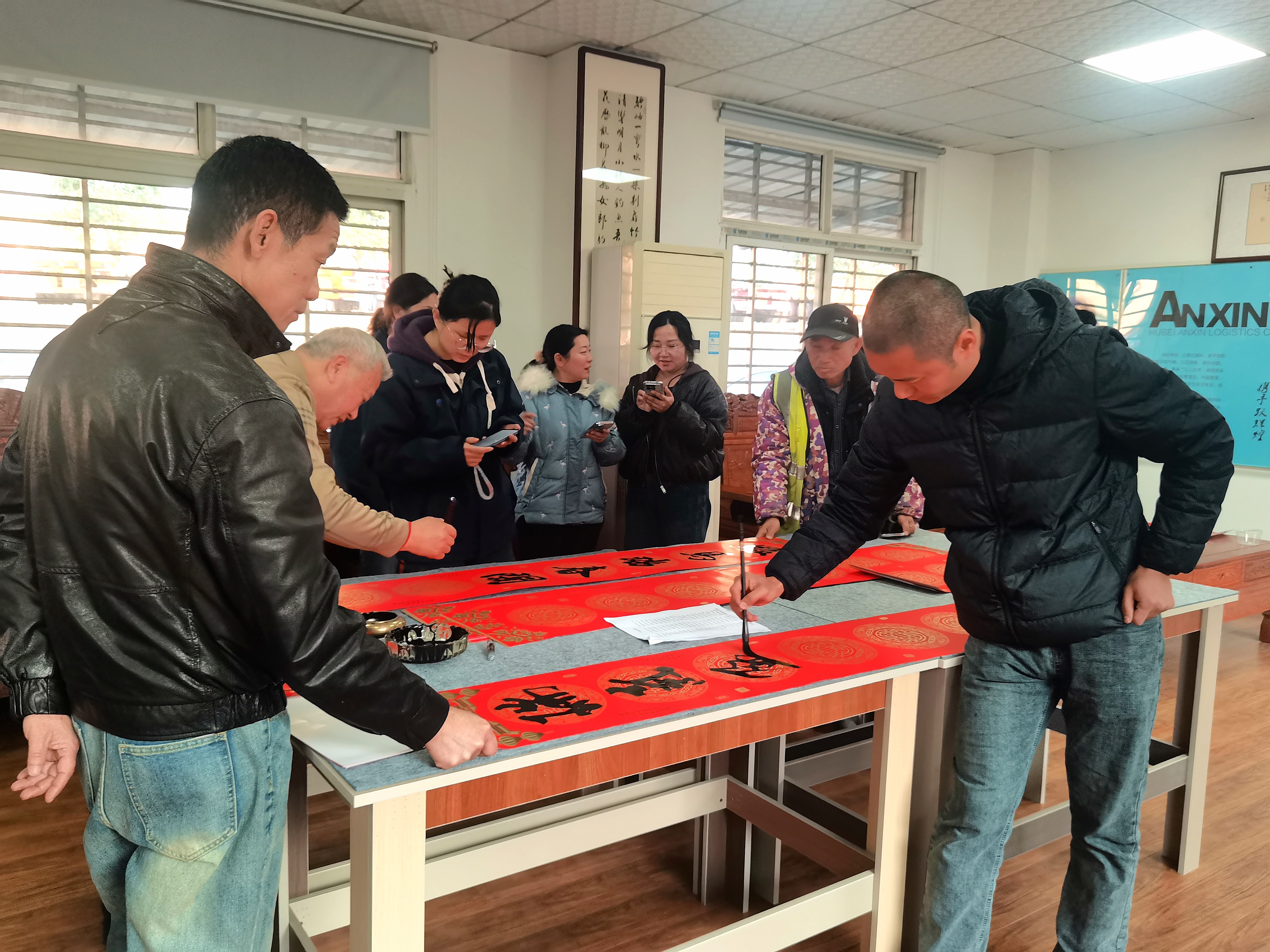 十余位银发艺术家精神矍铄、兴致盎然,纷纷铺纸研墨、挥毫泼墨,进行对联和绘画创作,一幅幅作品跃然纸上。尤其那些饱含“福”“寿”“顺”“兴”等吉祥寓意的春联,更是紧扣企业发展与职工心声,引得职工们驻足观赏、啧啧称赞,现场气氛热烈而温馨。