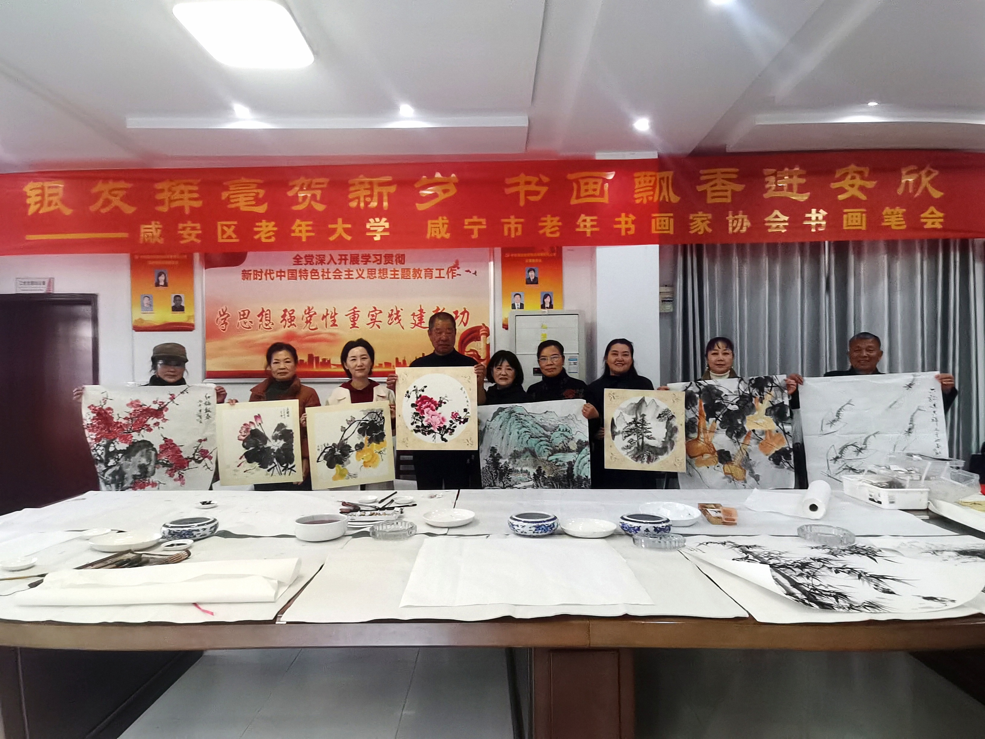 云上咸安报道 1月14日,咸宁市老年书画家协会携手咸安区老年大学、区老年书画家协会的银发艺术家们走进安欣物流公司,以一场别开生面的书画笔会搭建起文化与产业交融的桥梁,为现代物流企业注入醇厚绵长的传统文化活力。