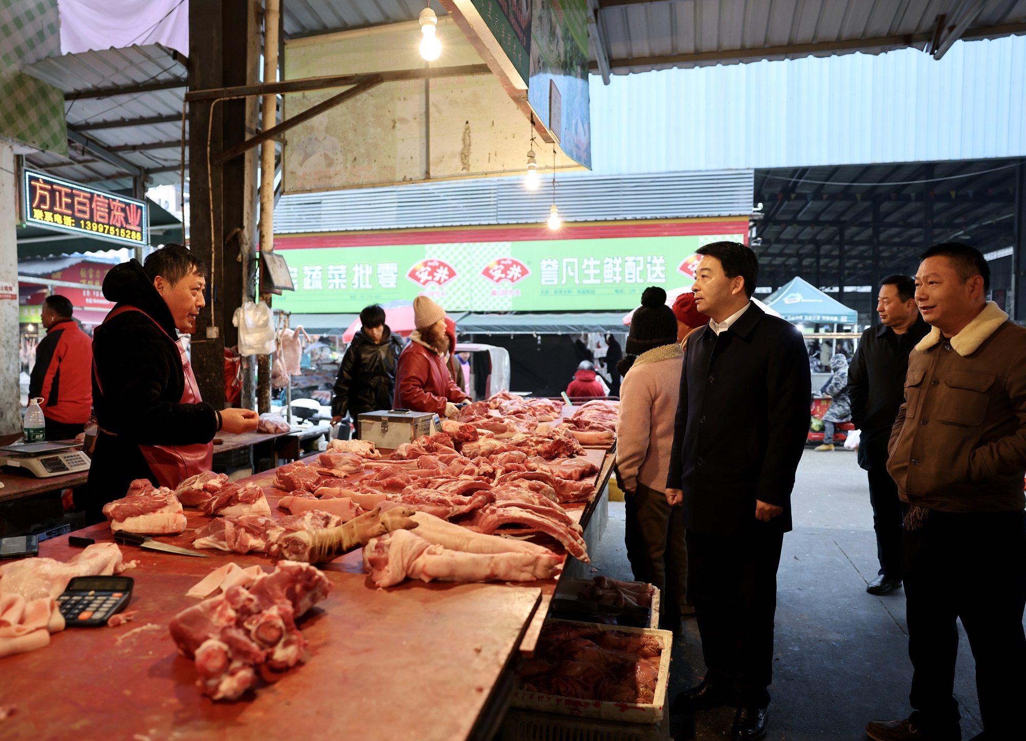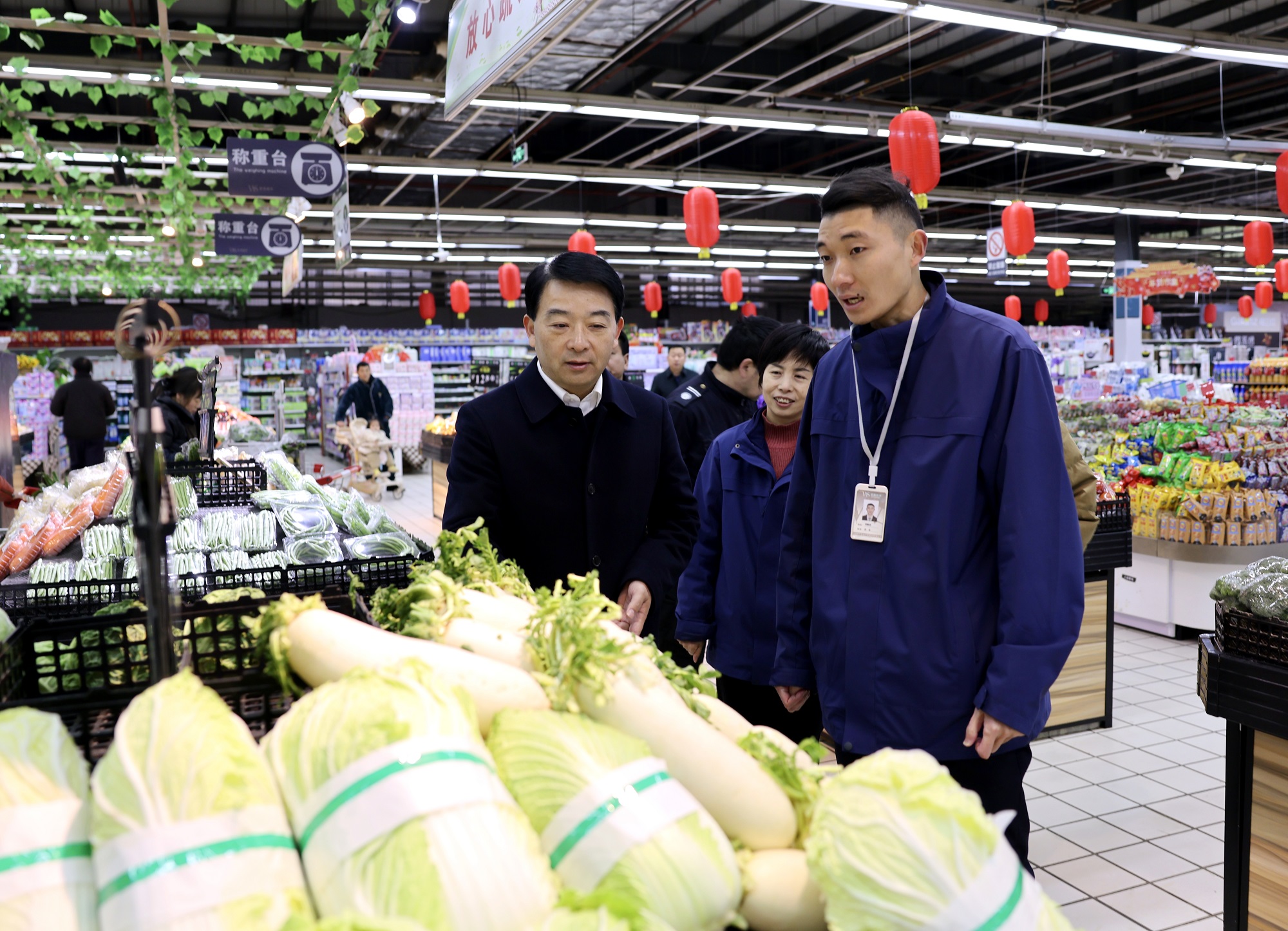 在亿丰农贸市场,督导组一行重点检查了市场内大棚的结构安全状况,详细询问市场管理方关于棚顶积雪清理、应急加固等安全防范措施。督导组还走进多个肉类、蔬菜摊位,与经营户细致交流,详细了解当前猪肉、牛羊肉及各类蔬菜的货源组织、库存数量、销售价格及物流运输等方面的情况,要求市场管理方切实履行主体责任,在确保交易场所安全的同时,积极组织货源,保障“菜篮子”商品量足价稳。