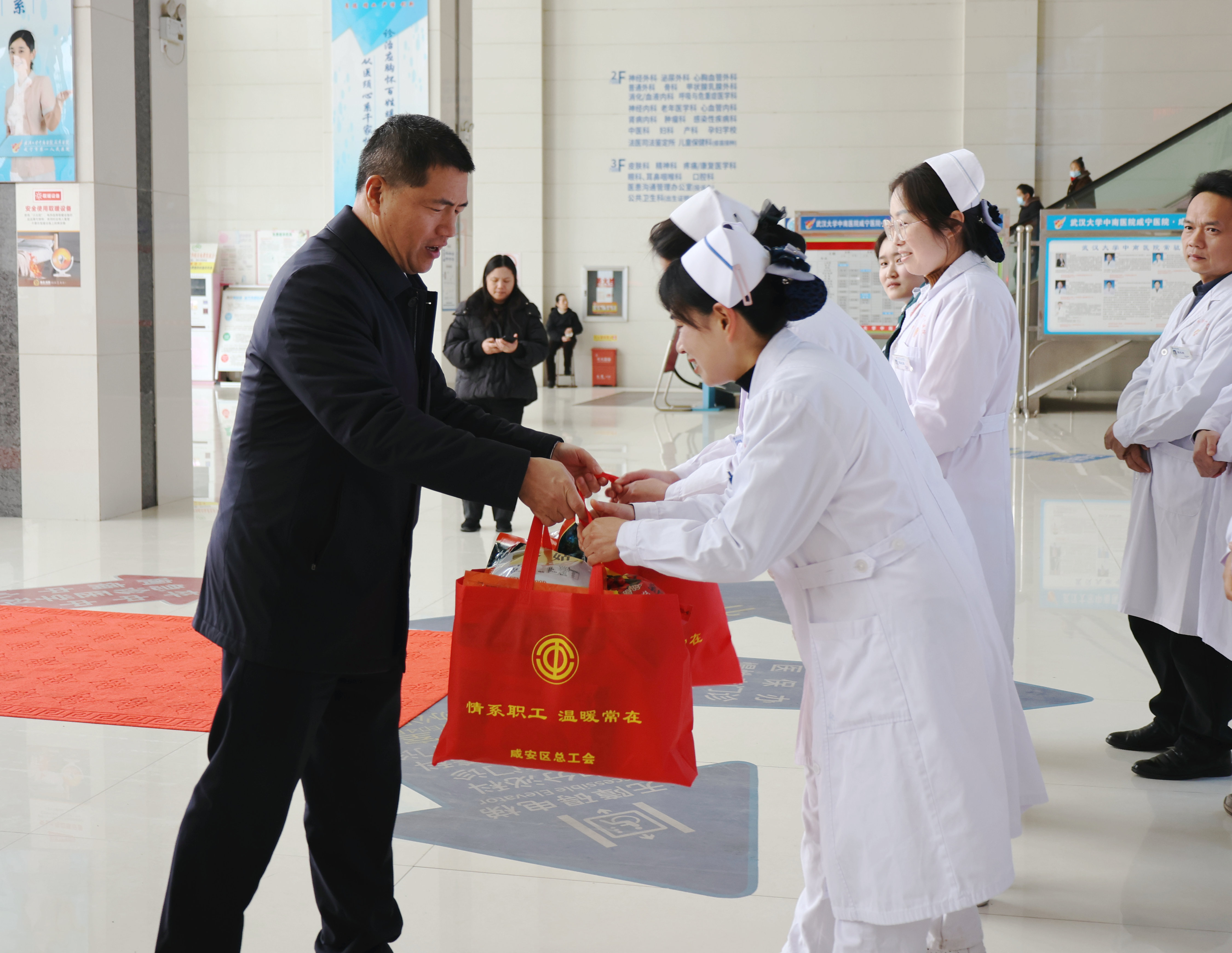 在咸宁市第一人民医院,慰问组与医护人员亲切交流,感谢他们在守护人民健康中的无私奉献与辛勤坚守。胡甲文指出,广大医务工作者是健康中国建设的重要力量,工会组织要持续关心医务人员的工作生活,切实帮助解决实际困难。