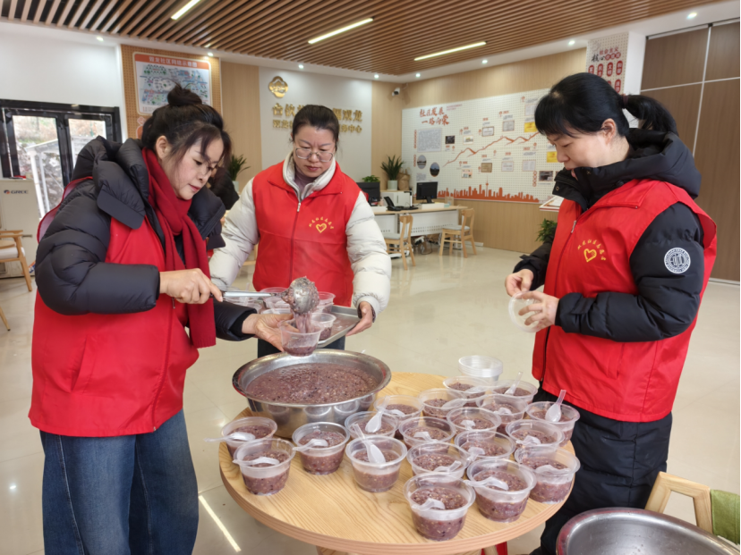活动还设置美食分享环节,居民围坐品尝腊八粥、水饺,社区为环卫工人代表送上粥品礼包致谢。活动尾声,工作人员与志愿者分组走访独居老人,上门送去热粥,让关爱全覆盖。