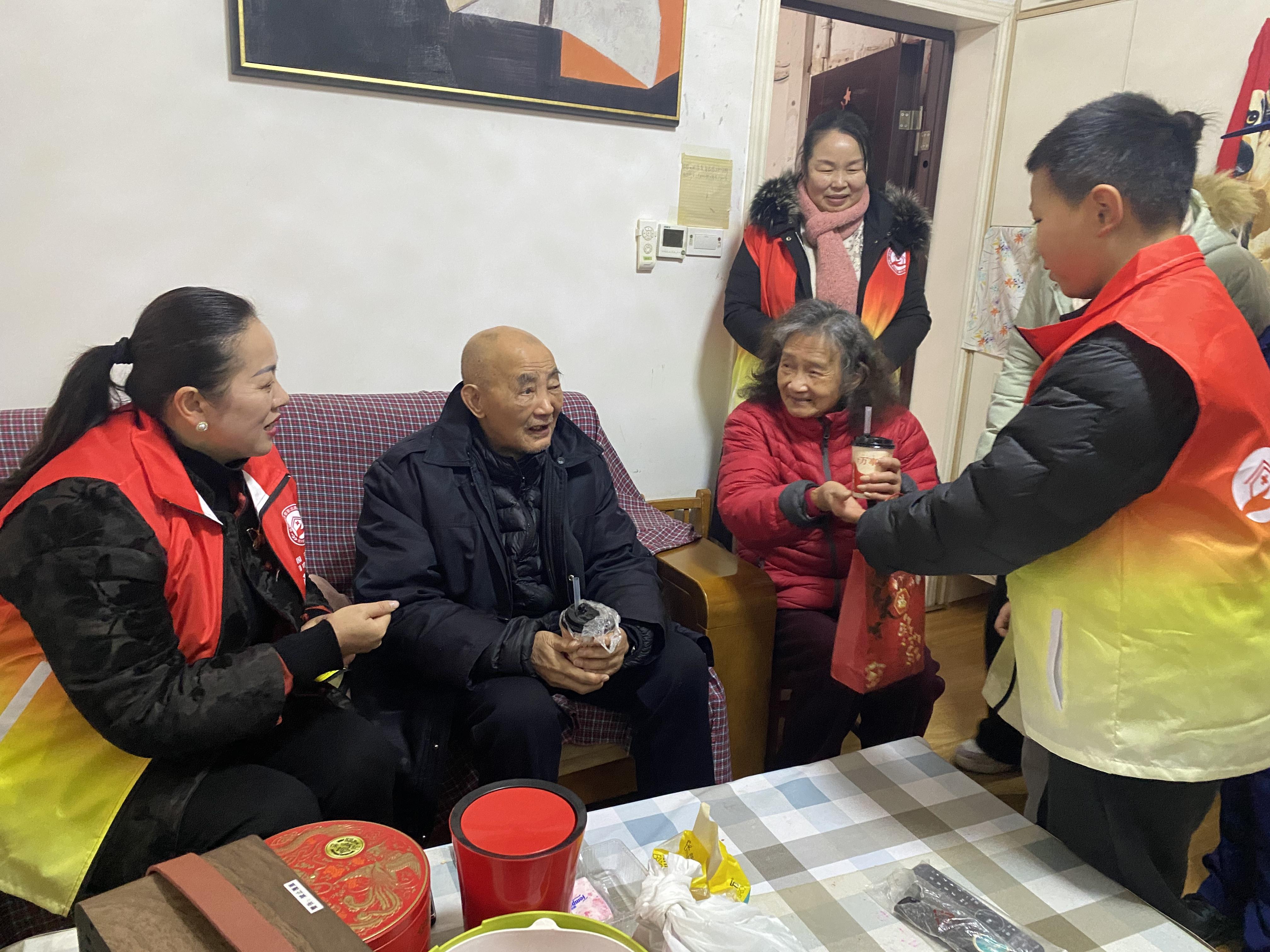 随后,在陈红的带领下,小朋友们也加入了志愿服务队伍,分成若干小组,携带装有保温腊八粥的“暖心包”,前往社区特殊困难老年人家中。敲门问候、送上童声祝福、协助老人品粥……志愿者们不仅传递着节日的温暖,更耐心询问老人近况,并宣传居家用火安全。