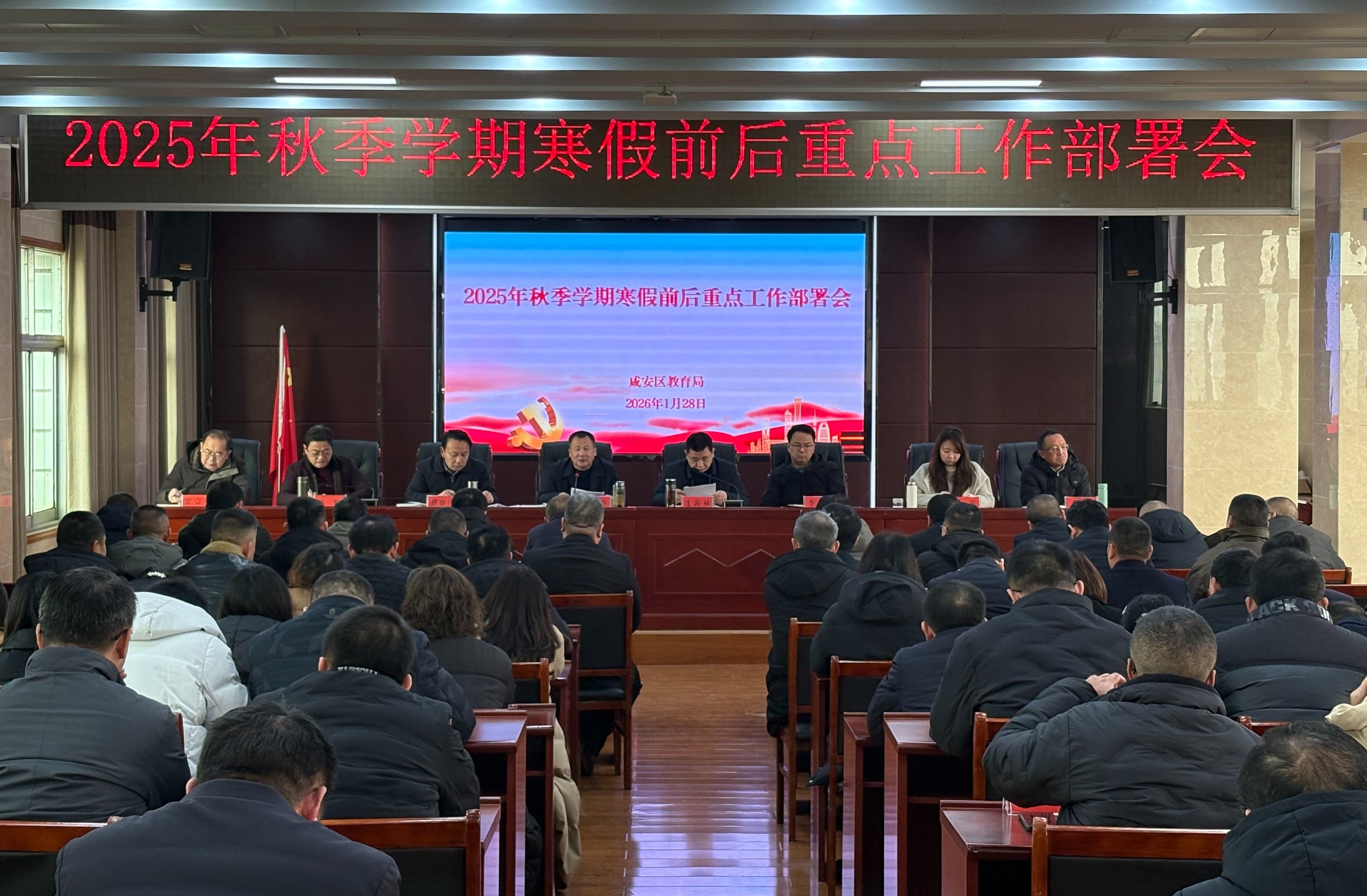云上咸安报道 1月28日上午,咸安区教育系统2025年秋季学期寒假前后重点工作部署会召开。全体党组成员、副主任督学,机关各股室及二级单位负责人,各乡镇(街道)教育总支书记、中小学校主要负责人共计90余人参加会议。