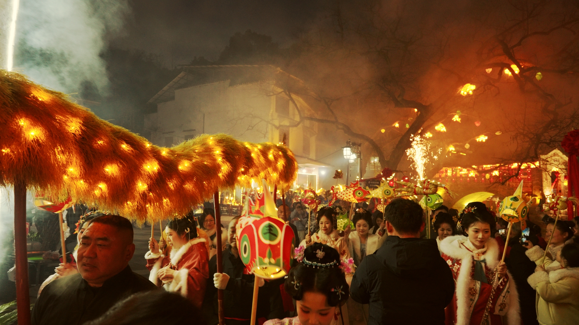 云上咸安报道 1月28日,咸宁市咸安区2026年“天河金丝龙”首演活动在桂花镇刘家桥村举行。这场以“非遗贺新春”为主题的民俗盛宴,融合了传统舞龙、汉服巡游、打铁花等元素,为当地群众和各地游客带去了一场沉浸式的年味体验。