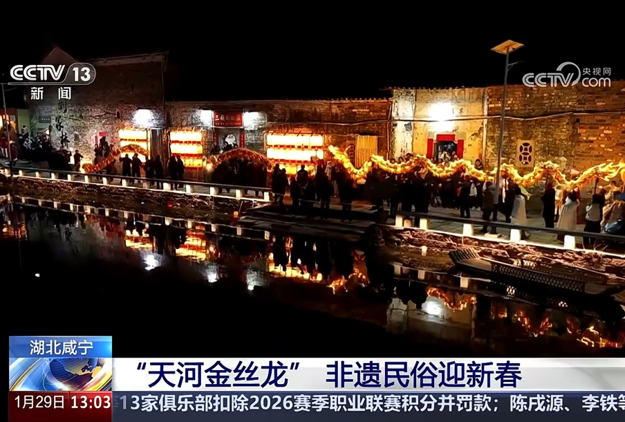 1月29日央视CCTV-1《新闻30分》,央视CCTV-13《新闻直播间》相继关注咸安“天河金丝龙”,非遗民俗迎新春活动,展现非遗与文旅融合的创新发展亮点。报道由咸宁市融媒体中心和咸安区融媒体中心联合采制。