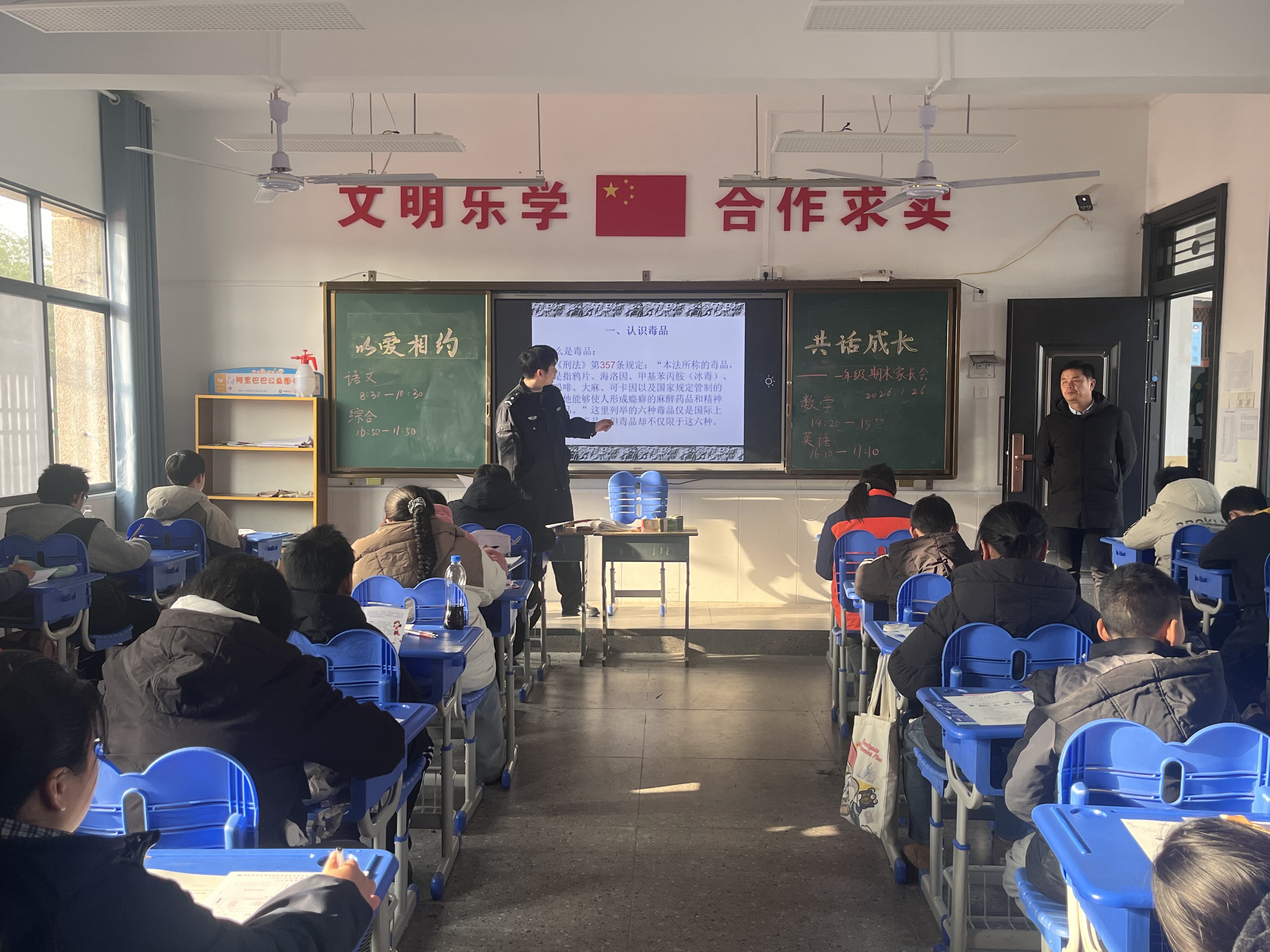 云上咸安报道 为进一步加强青少年毒品预防教育,切实提升在校学生识毒、防毒、拒毒意识和能力,1月28日,高桥镇平安办、高桥派出所、高桥镇社区戒毒康复中心采取“校外发单+校内授课”的模式,在高桥学校开展了一场生动的禁毒宣传教育活动,将禁毒知识精准送达学生及家长身边,实现教育一个学生、带动一个家庭、影响整个社会的宣传效果。