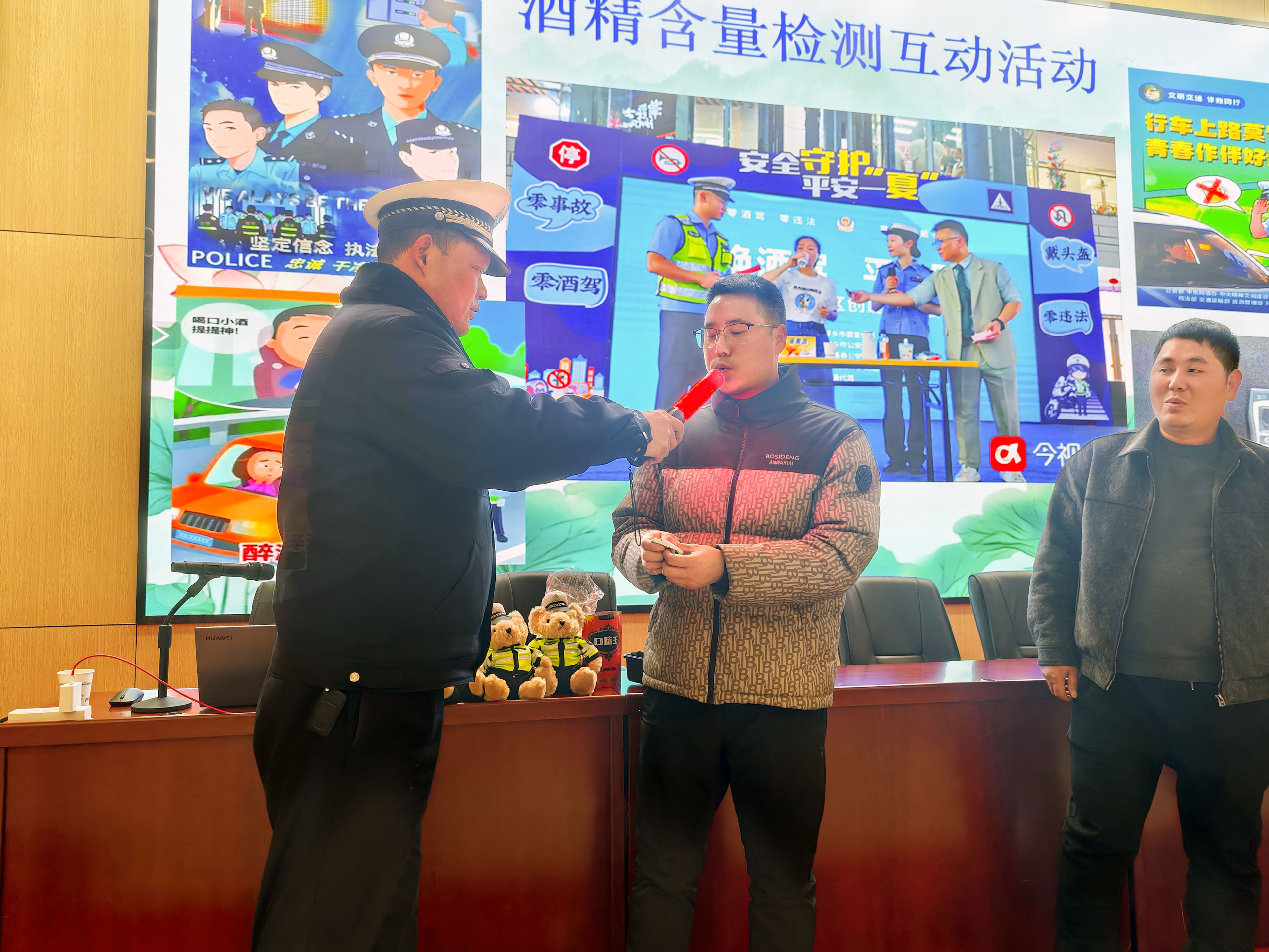 培训现场还设置了互动体验环节,几位员工在饮用含酒精饮料、食用蛋黄派后,进行酒精吹气检测。检测仪数值的瞬间变化让大家纷纷惊叹,对酒驾的判定有了更深刻直观的认识。主讲与参训人员积极互动,对酒驾、醉驾等认定标准一一进行详细解答,让大家对“喝酒不开车,开车不喝酒”的铁律更刻骨铭心。