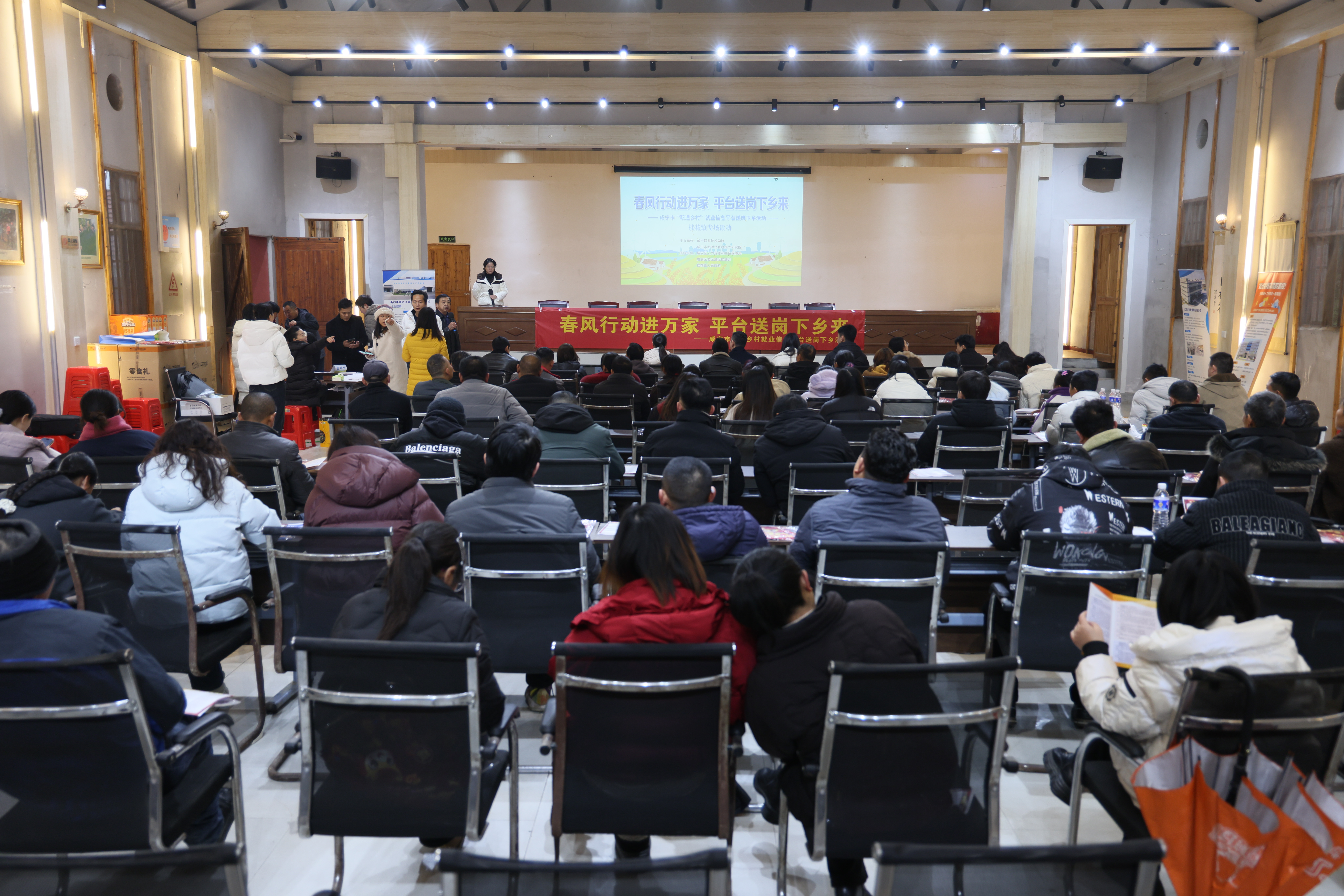 云上咸安报道 2月6日上午,咸宁市“职通乡村”就业信息平台送岗下乡活动在咸安区桂花镇文化站再次启动。该活动由咸宁职业技术学院、咸宁市新时代乡村振兴研究院联合咸安区人力资源和社会保障局、咸安区老区建设促进会及桂花镇人民政府共同主办,旨在持续推进“职通乡村”项目落地,将就业岗位与服务送到群众家门口,破解乡村就业难题。