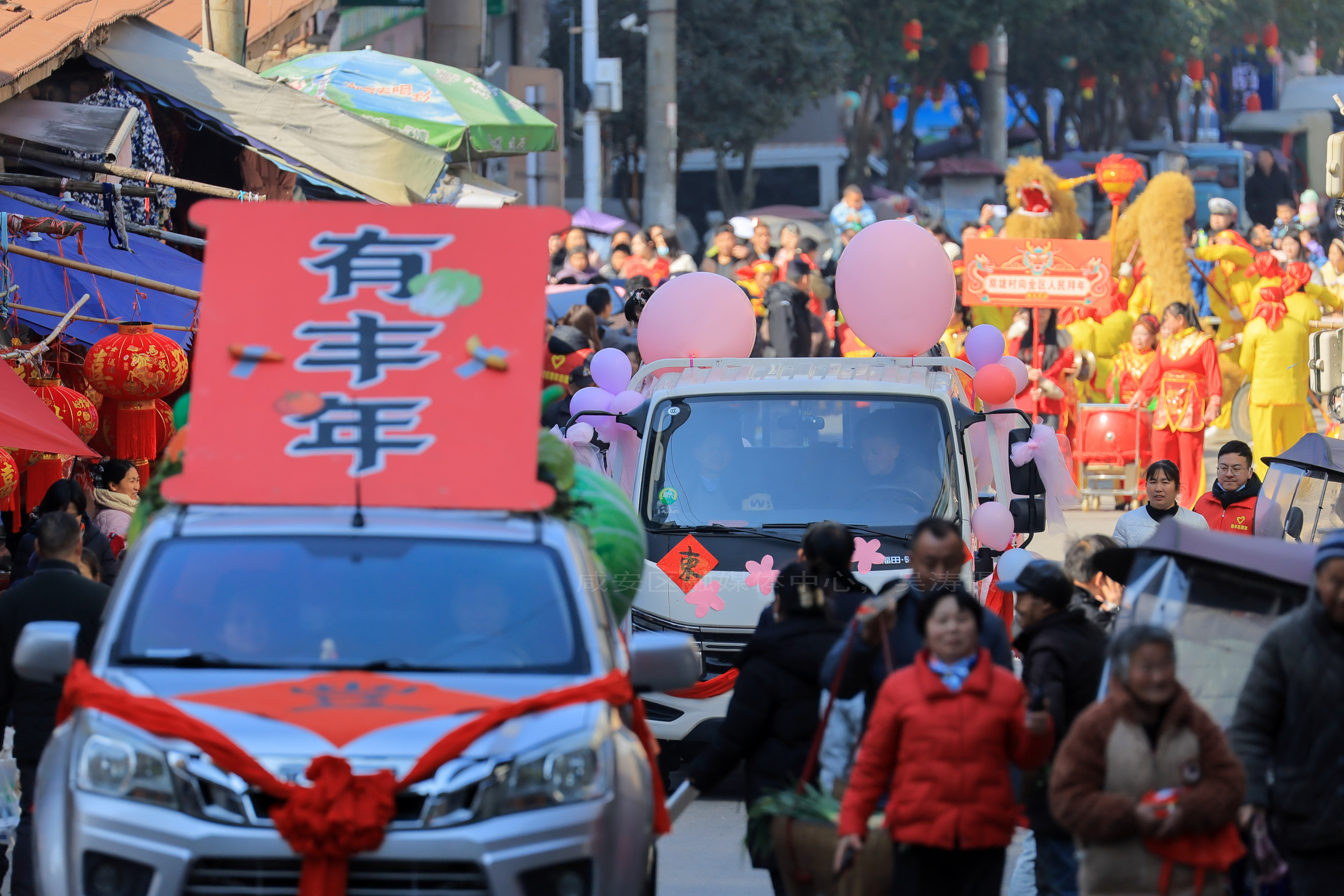 五彩花车沿街巡游,宛如一幅流动的年画,为活动增添了不少色彩。主舞台区文艺表演精彩连连,既有专业团队的激昂演奏,也有本土节目的温馨献唱,引来观众阵阵掌声。乡土集市上,“大幕限定”特产琳琅满目,乡亲们穿梭于各摊位间,笑意盈盈地置办年货。趣味游戏区,孩子们玩得不亦乐乎。这场融合传统年俗与创意互动的乡村嘉年华不仅点燃了新春的热情,更让浓浓的年味和乡土情怀在欢声笑语中流淌传递。