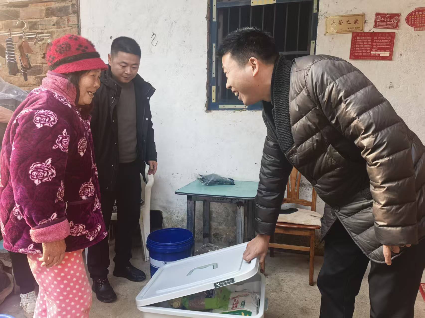 “德亨叔,年货备足了吗?”走进五保户余德亨老人家,徐炜与老人拉起了家常,“我们两口子,年年都让你们惦记着……”“这些东西实在,都是过日子用得着的。”徐炜一边帮老人把油拎进厨房一边说,“咱把年过好,开春日子会更好!”
