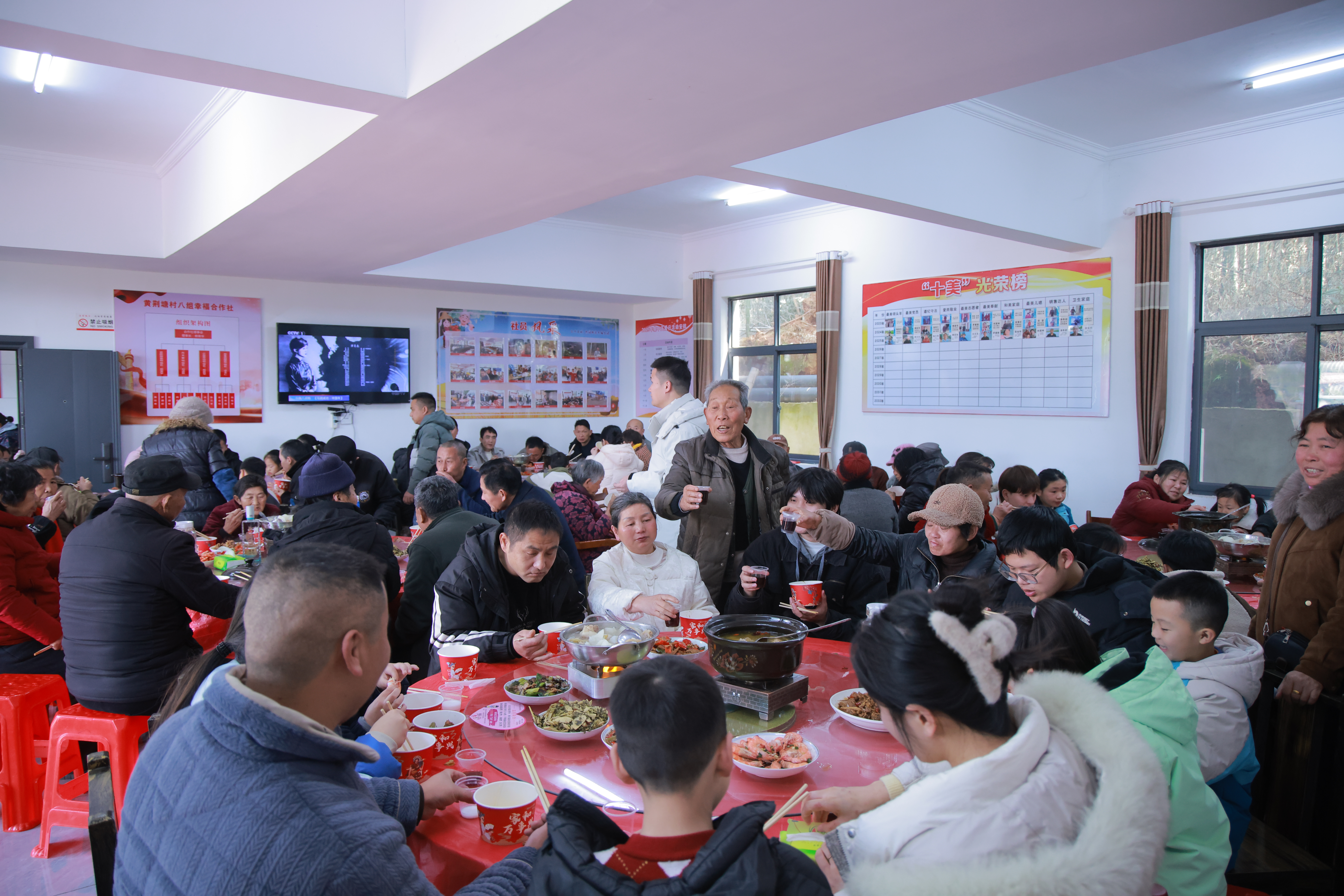 分红结束后,9桌热气腾腾的团年饭准时开席,村民们围坐在一起,吃着家乡菜,聊着一年的收获,盼着来年的好日子。“我们发展的初心,就是让每一个村民都受益,一年比一年更好。”熊荣华看着眼前热闹的场景,满心欣慰,“连续八年分红,从2018年1000元的到如今35.9万元,从小年分红成为惯例,从‘脏乱差穷村湾’到‘和美明星湾’,变化的是村容村貌,不变的是大家一起致富的初心。”