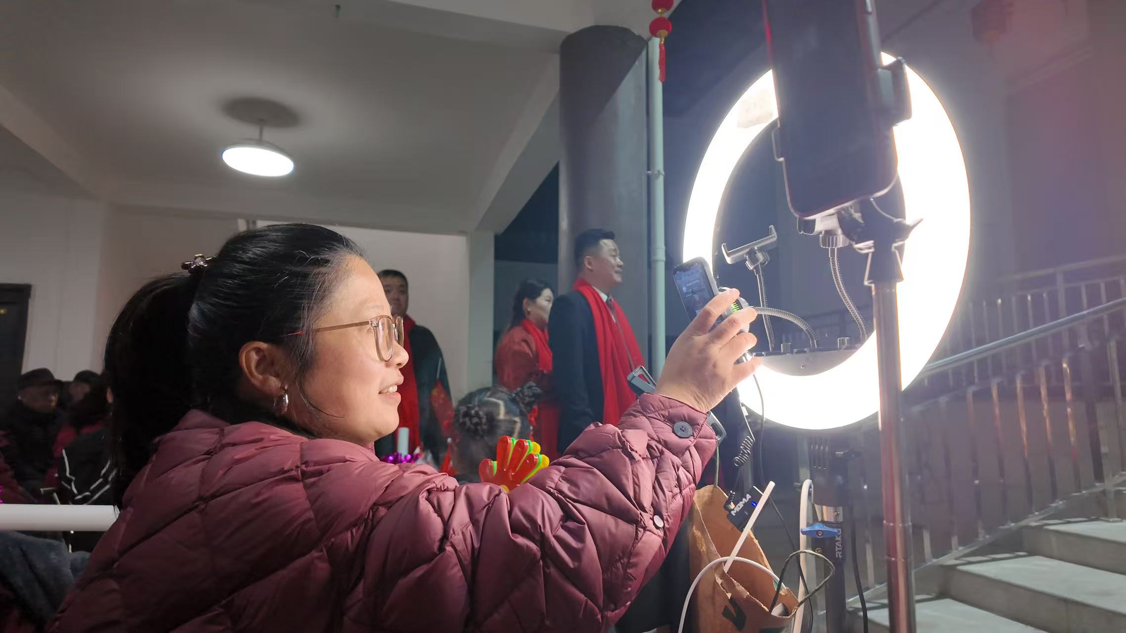 这场热闹非凡的“村晚”,从一开始就凝聚着全村人的心意。由村民主动提议、村湾理事会商议敲定,消息一传出,立刻得到了大家的全力支持——有钱出钱、有力出力,有才艺的主动报名上台,懂技术的义务调试设备,还有擅长直播的村民架起手机,全程在线直播,让远在外地不能回家的游子,也能隔着屏幕“云团圆”,感受家乡浓浓的年味与亲情。