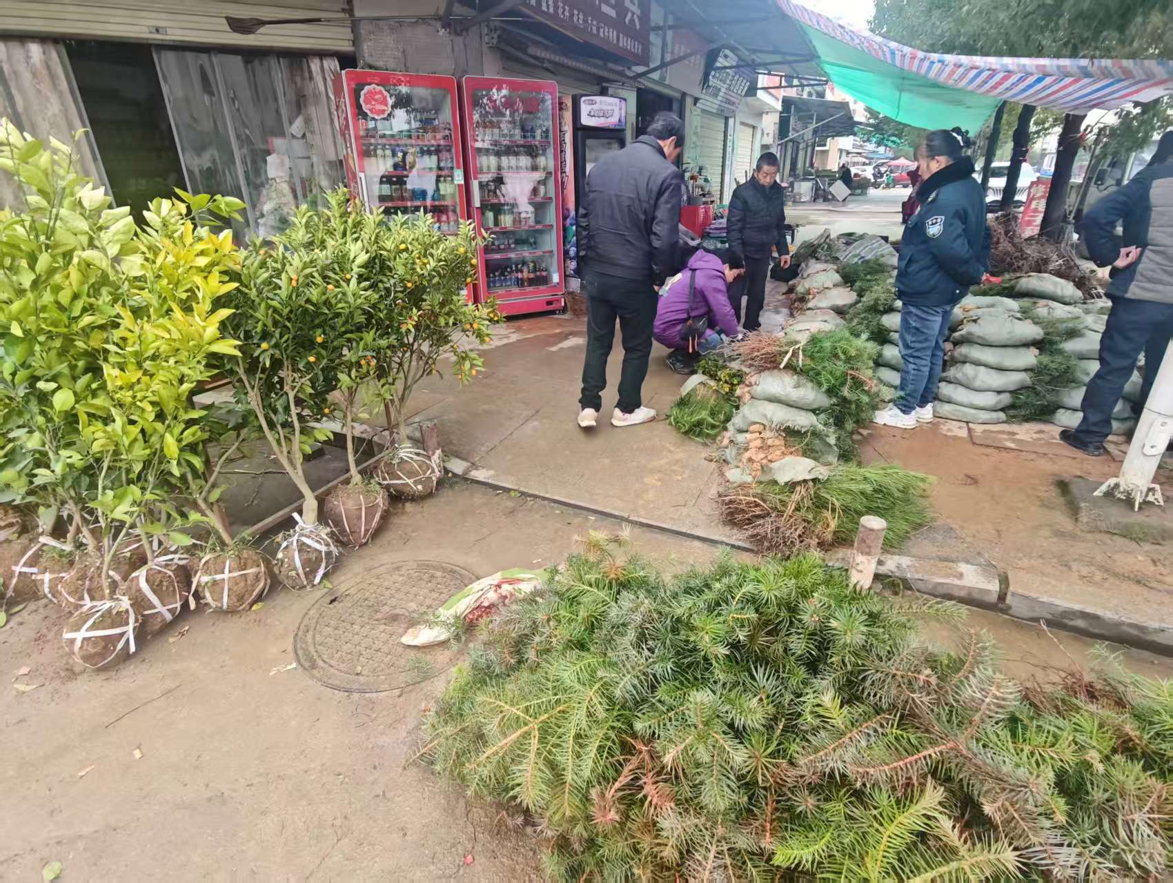 在苗木市场,一袋袋带着土球的杉树苗堆成了小山,一旁的柑橘、柚子等果树苗枝繁叶茂,部分金钱橘苗上还挂着金黄的果实,格外引人注目。商户们忙着向顾客介绍品种、讲解种植技巧,村民们则仔细挑选着心仪的苗木。“这几天天气好,每天都能卖出上百株苗子。”一位多年在此经营的商户介绍,今年的果树苗销量比往年同期有所增长,庭院种植需求成了主要拉动力。