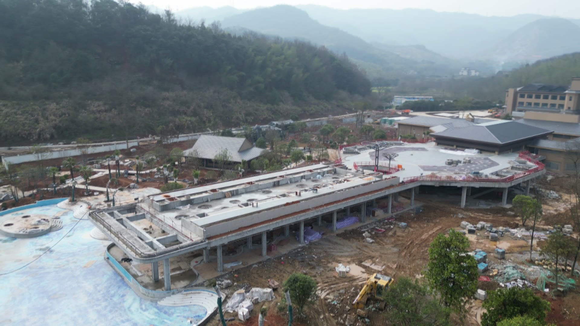 项目自2025年6月动工建设以来,目前已进入攻坚阶段。通过科学统筹,项目分为太乙、温泉两个片区同步推进。目前,太乙片区的太乙洞、汤舍、宴会楼已率先交付并投入运营;温泉片区内,奇趣酒店与温泉中心内装已具雏形,室外热泉区绿化全面铺开,冷泉区施工正酣。值得一提的是,项目已于去年10月1日完成太乙洞景区的全面焕新并对外开放。