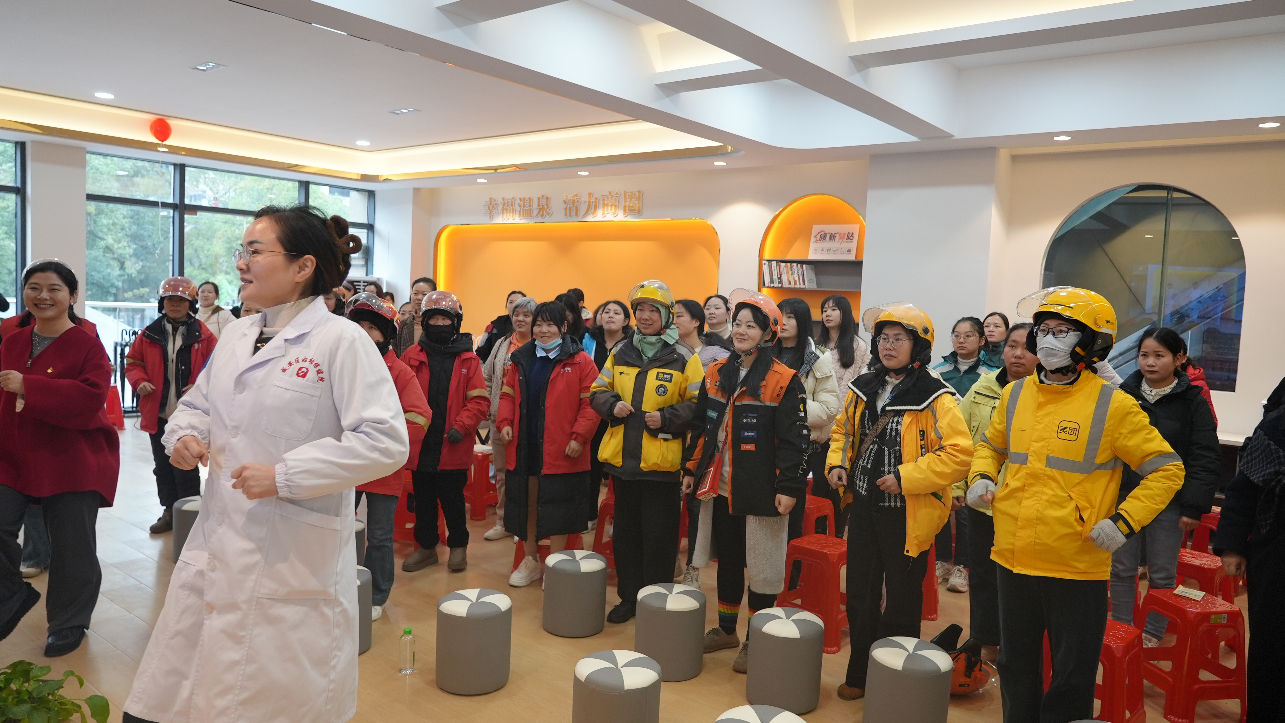 活动现场暖意融融,区委社会工作部首先为到场的女性代表送上了精心准备的暖“新”女性用品礼包,护手霜、雨伞、红糖姜茶、红枣蜂蜜、桂花保健品等贴心实用的物资,让大家在节日里感受到了浓浓的温情。健康服务专区人气十足,区卫健局组织温泉社区卫生服务中心、区妇幼保健院等爱心医院的全科医生现场坐诊,不仅提供血压测量、血糖检测、女性“两癌”免费筛查等义诊服务,还细致开展女性常见疾病预防、妇科保健、心理健康等知识咨询,同时带领大家一同学习春季养生操,用专业服务守护女性劳动者的身心健康。法律维权服务同样备受关注,区司法局组织公证员开展公证服务宣讲,为新就业女性搭建便捷的法律指导和服务通道,公益律师团队则通过“以案释法”、一对一咨询的方式,围绕劳动合同、婚姻家庭、劳动争议等热点问题,为大家提供精准的法律分析和维权指导。“平时送单遇到受伤、平台处罚申诉这些问题,正愁找不到专业解答,今天真是解了我们的燃眉之急!”外卖骑手钟女士在咨询后深有感触。
