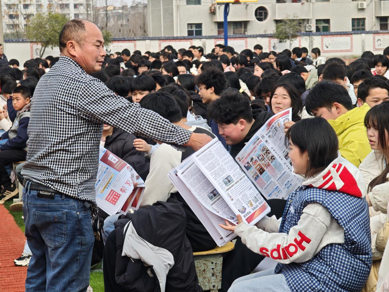 云上咸安报道 为深入推进平安校园建设,切实增强青少年法治观念与安全防范意识,3月6日下午,双溪桥镇政府平安建设办公室牵头组织,联合司法所、法庭、派出所、社区戒毒康复中心走进双溪中学,以“开学第一课”为契机开展专题法治安全教育宣讲。活动覆盖全体师生400余人,现场发放反霸凌、法治、禁毒、反诈等宣传资料1200余份。