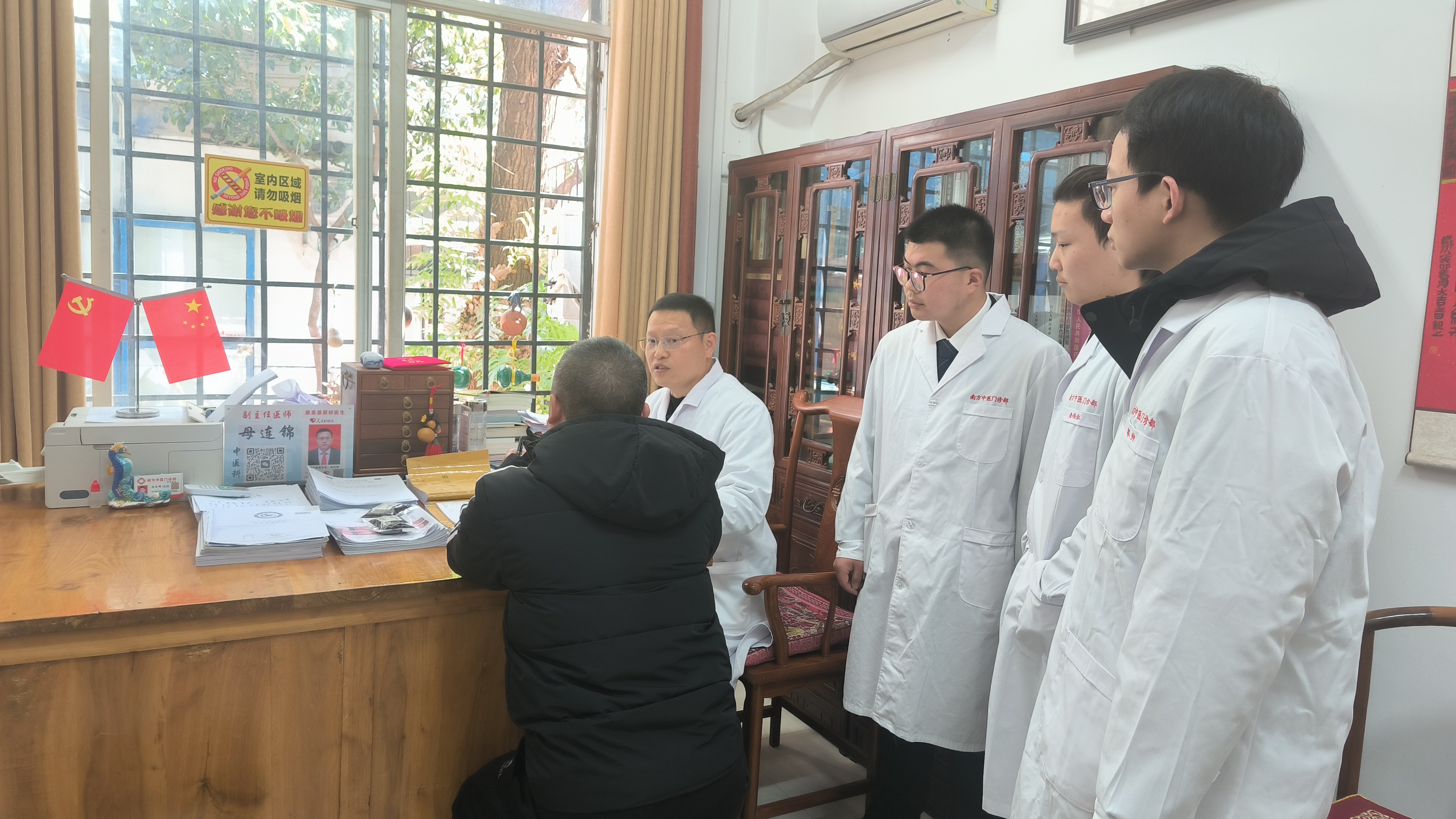 今年53岁的母连锦,出生于华佗故里安徽亳州,自幼浸润中医药文化。1990年高中毕业后,他考入湖北中医学院,深耕中医三十余载,先后师从鄂南名医王胜利、国医大师张大宁。1997年,他创办咸安区南方中医门诊部,凭借精湛医术与仁心仁术,荣获中国最美基层好医生、湖北省岗位学雷锋标兵等称号,现任南方中医门诊部主治医生、农工党咸安区总支副主委、咸安区政协委员。