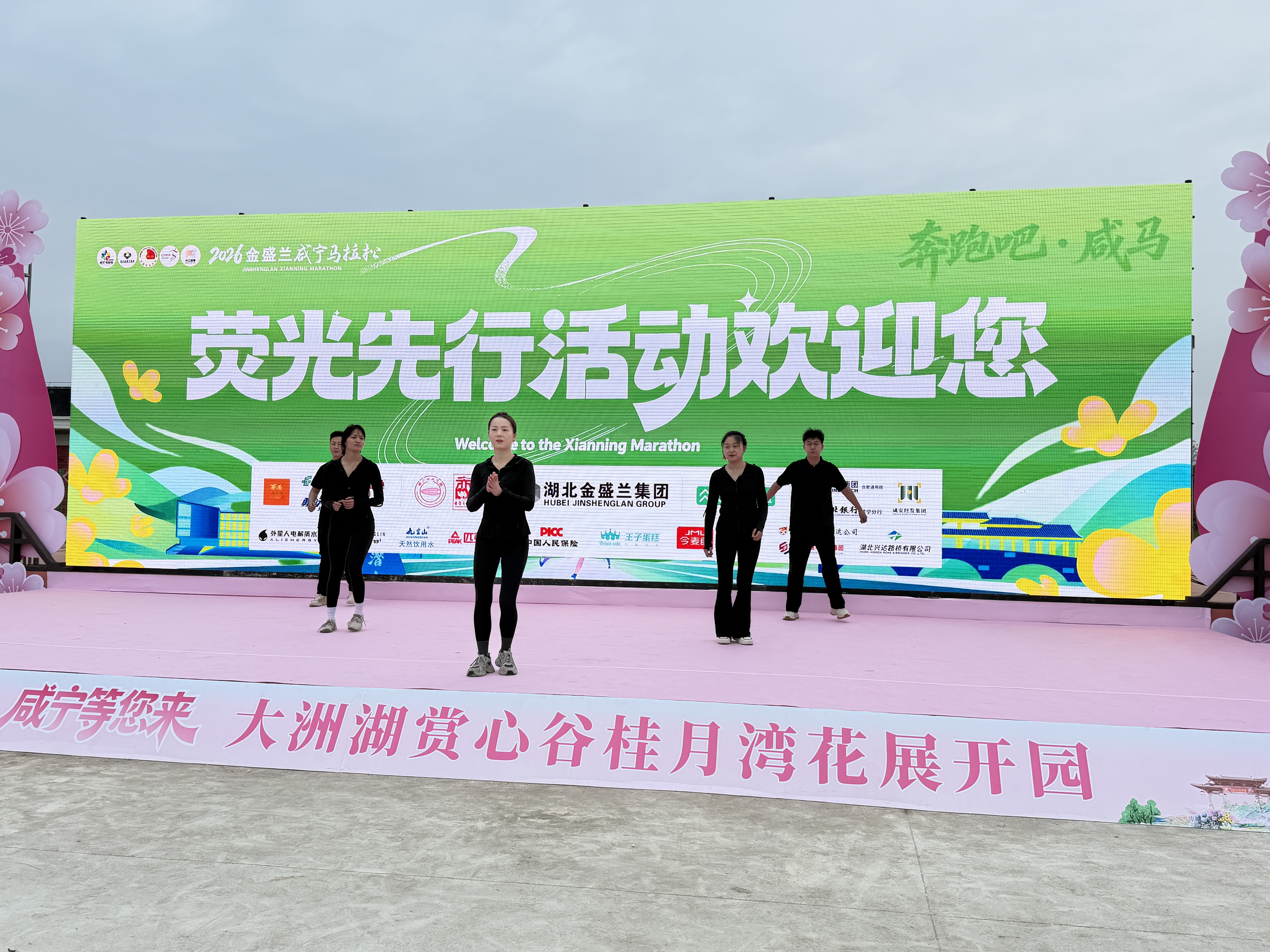 活动现场人头攒动,荧光集结区内欢声如潮。跑友们纷纷举起手机,发布带#奔跑吧咸马#与#2026咸宁马拉松#话题的抖音短视频,领取荧光棒与荧光手环。专业健身教练带领大家进行动态拉伸,并细致讲解运动中突发情况的应对要点,为安全奔跑护航。